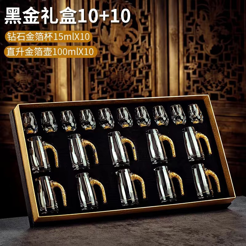 10 pcs 100ml gold foil pot +10 pcs diamond gold foil white wine glass + gift box