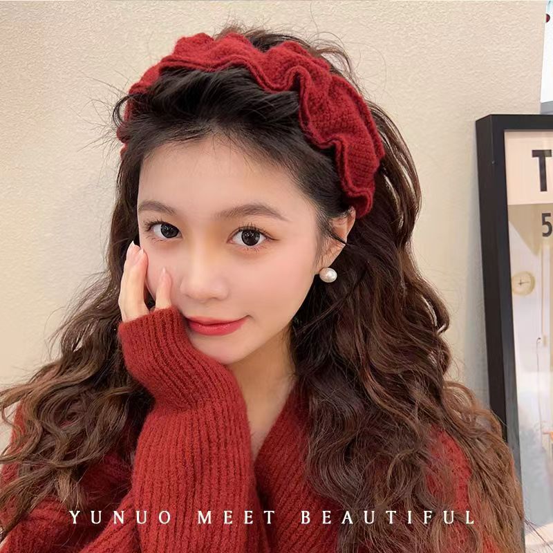 Autumn and Winter High-Grade Christmas Headband Wide-Edged Headband Sponge Hairpin Vintage Headwear Red Bridal Hair Accessories Ornament