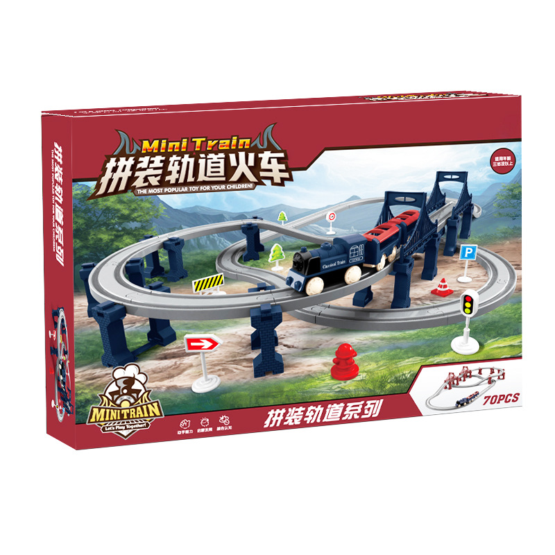 assembled rail train gift box [70pcs] blue battery version