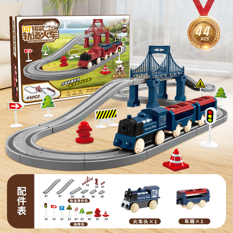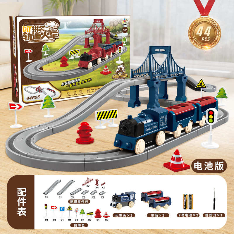 assembled rail train gift box [44pcs] blue battery version