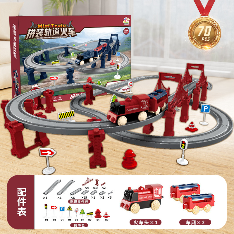 assembled rail train gift box [70pcs] red battery version