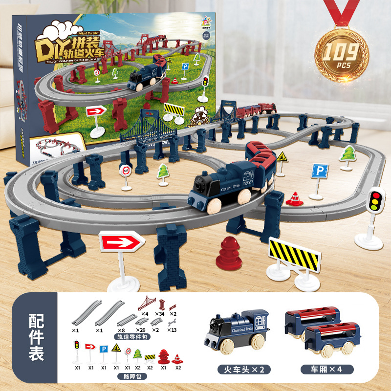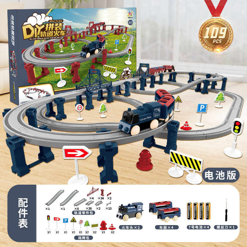 assembled rail train gift box [109pcs] blue battery version