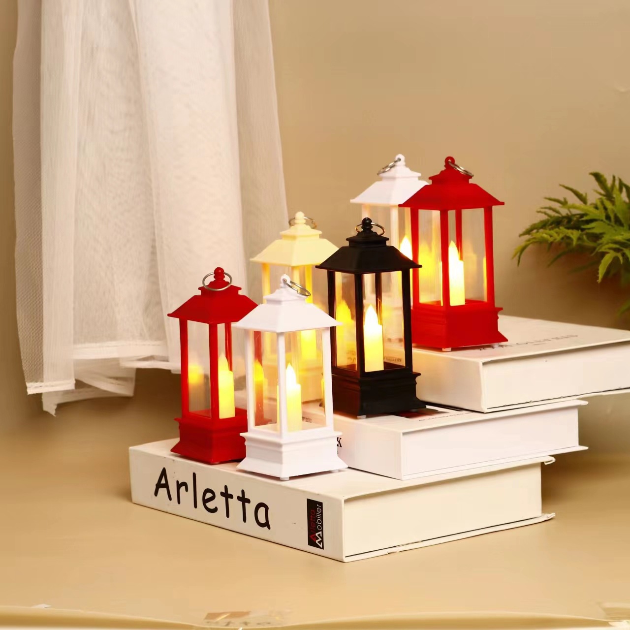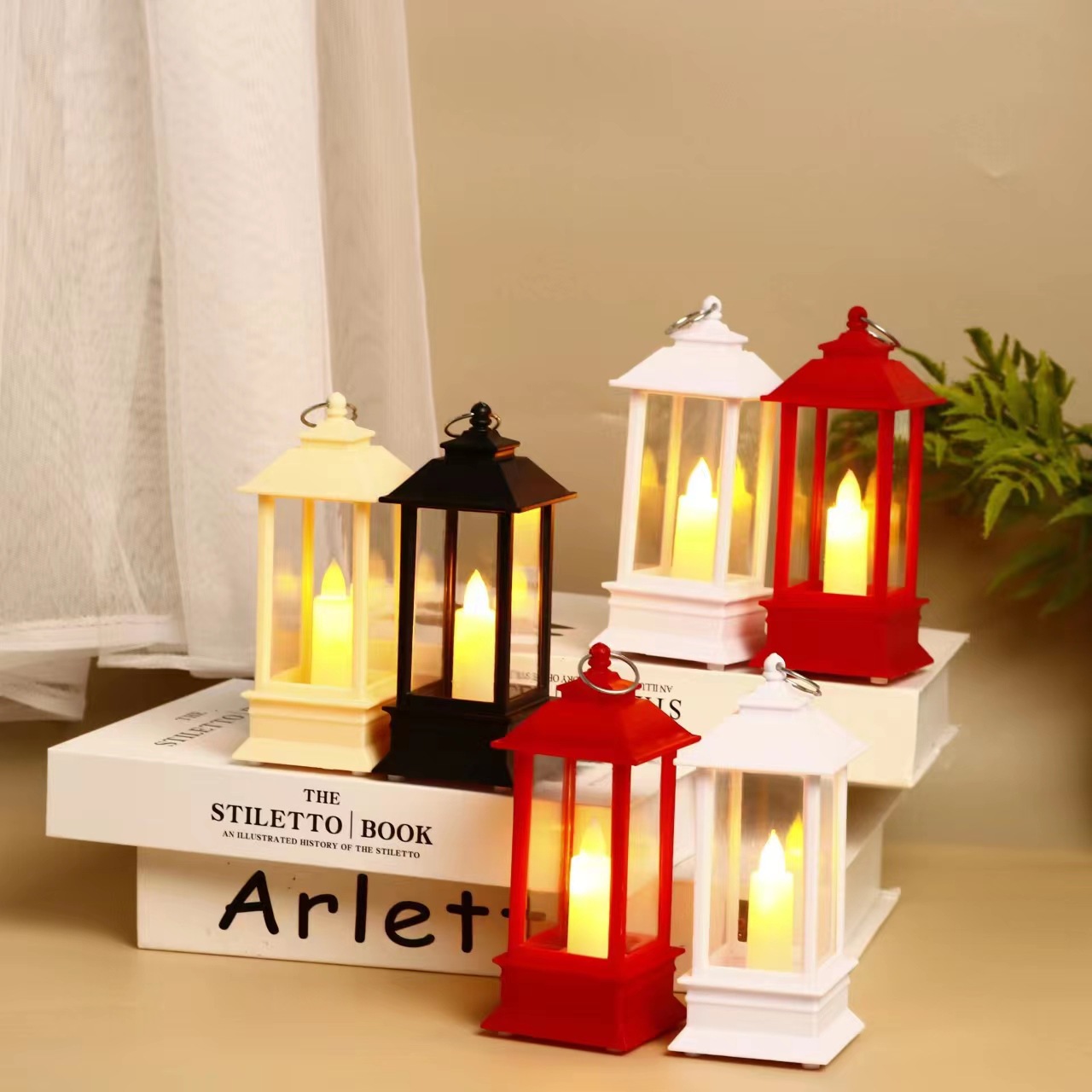 cross-border retro square small lantern small oil lamp electric candle lamp plastic night lamp small night lamp decoration ornaments storm lantern