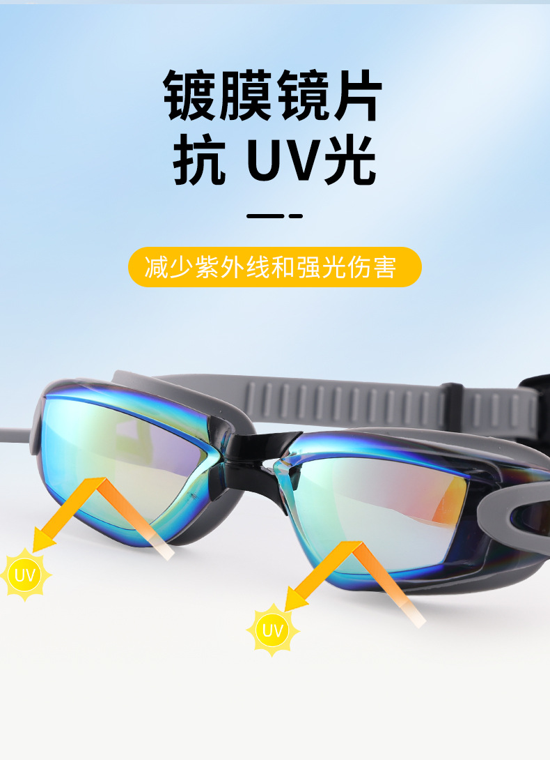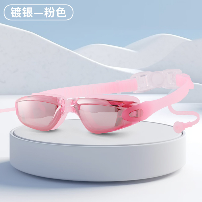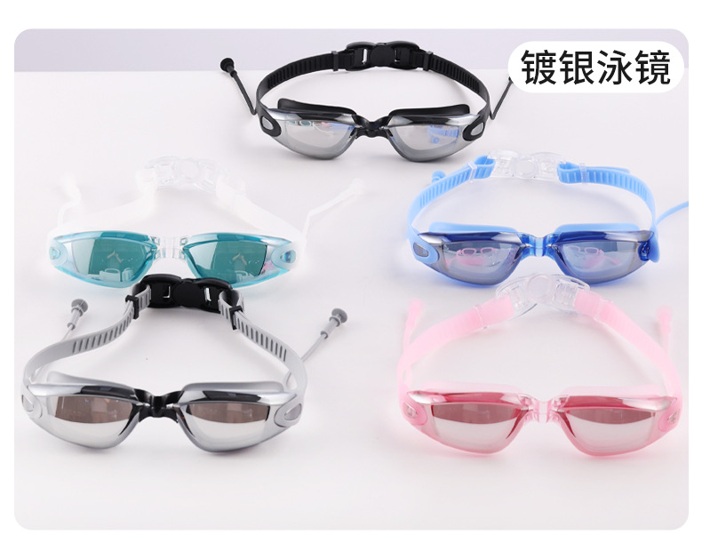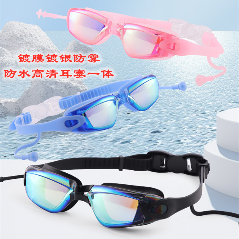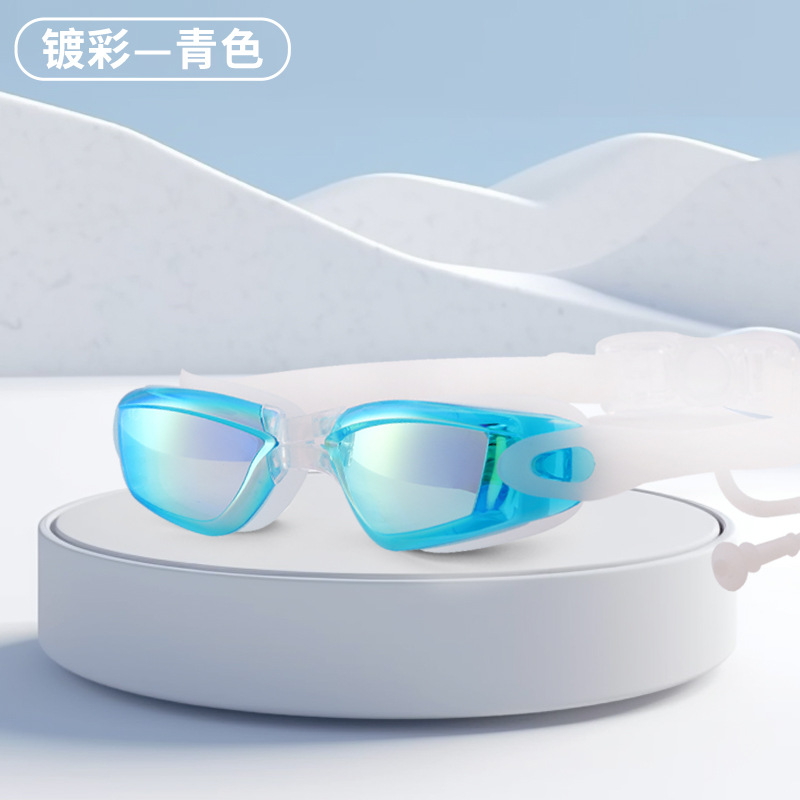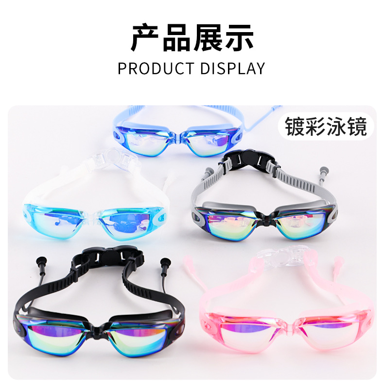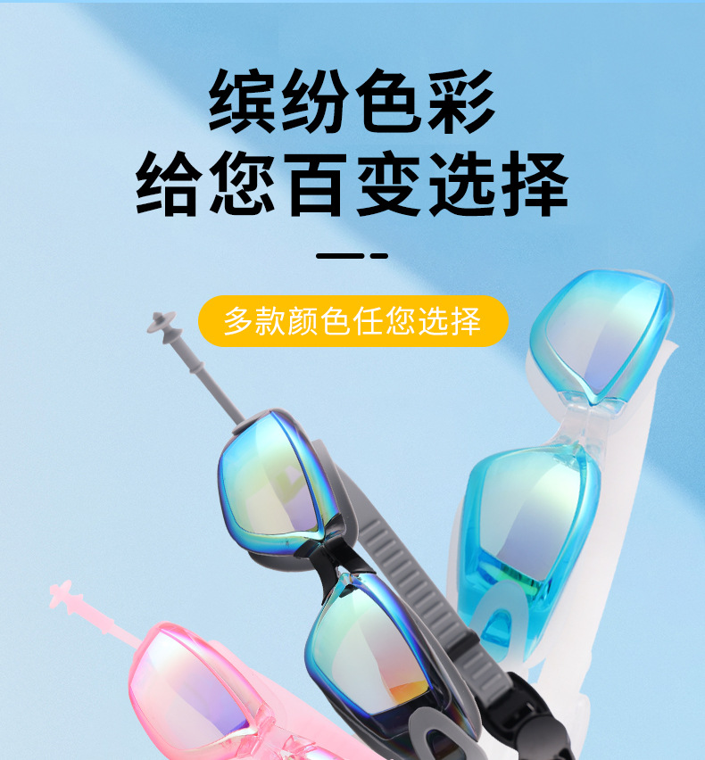 Adult HD Waterproof Anti-Fog Colorful and Silver-Plated Swimming Goggles