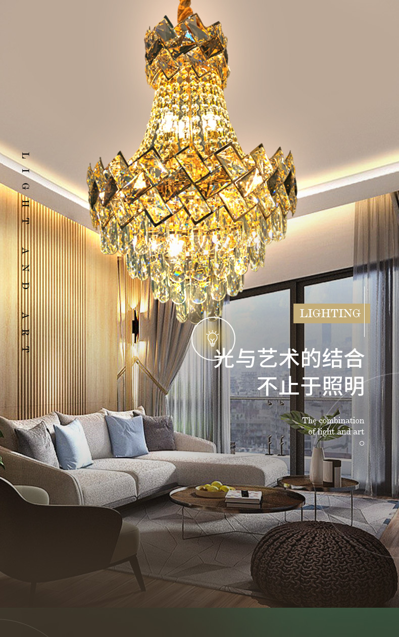 lamps duplex building crystal chandelier light luxury suspension wire hollow villa living room home multi-layer crystal stair light