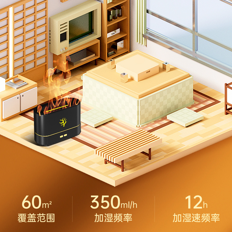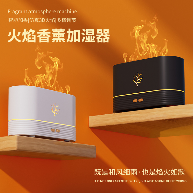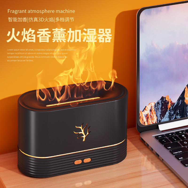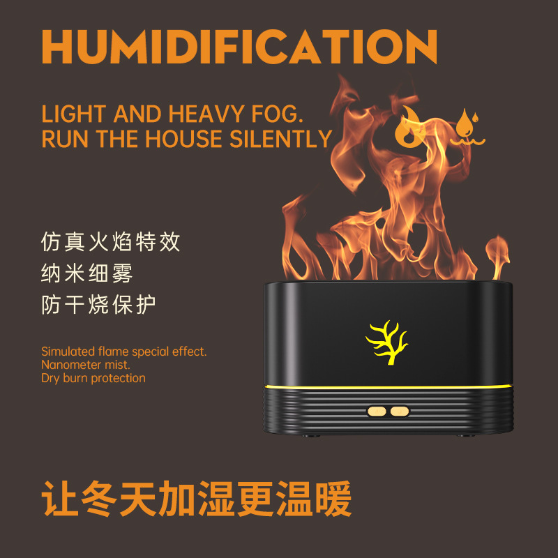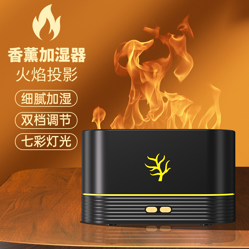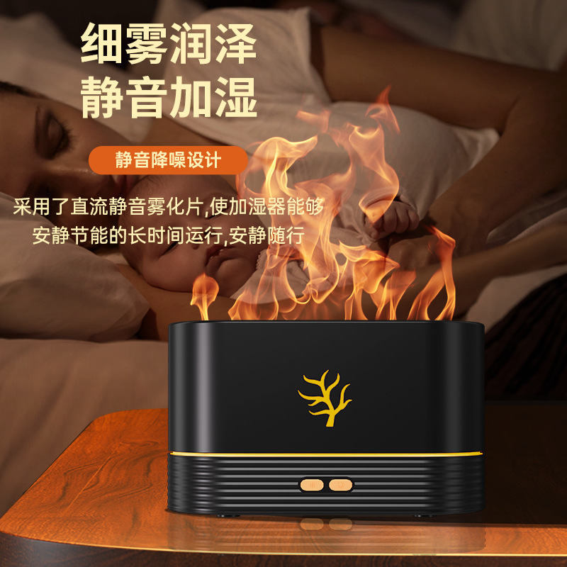 Cross-Border New Arrival Ultrasonic Colorful Flame Humidifier Aromatherapy Usb Home Mute Air 3d Flame Aroma Diffuser