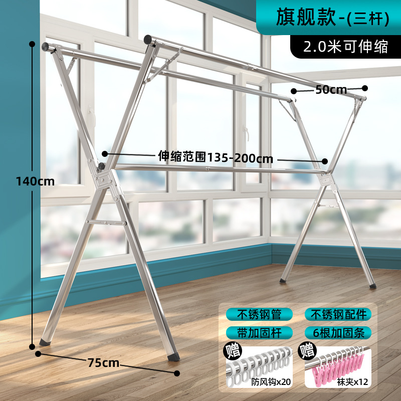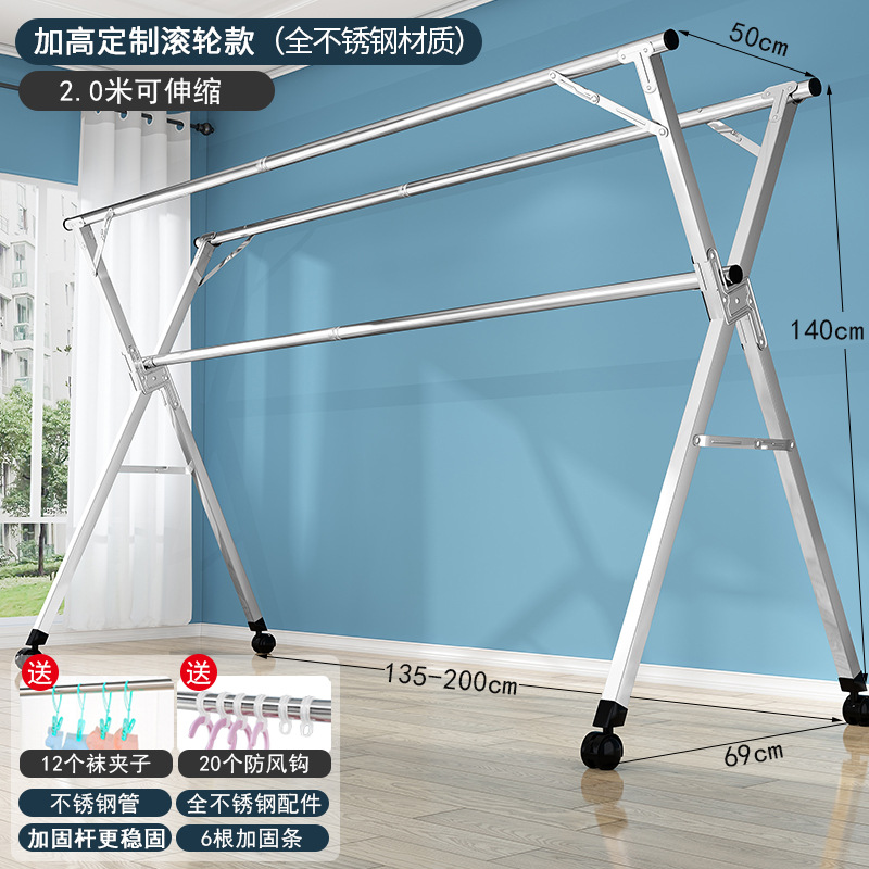 bold all stainless steel 2.0 m three rod + universal wheel