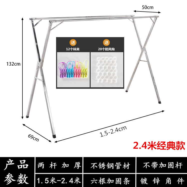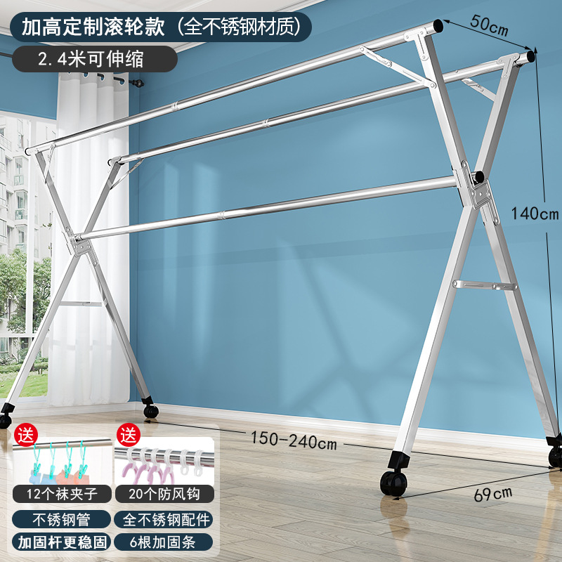 bold all stainless steel 2.4 m three rod + universal wheel