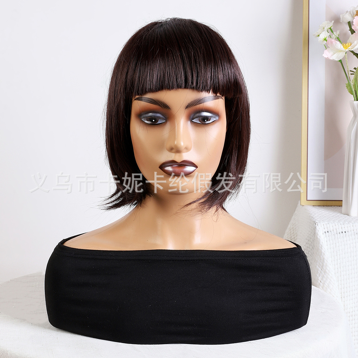 10inch female wig bobhaircut straight bangs mechanism chemical fiber dark red student new wholesale wigs