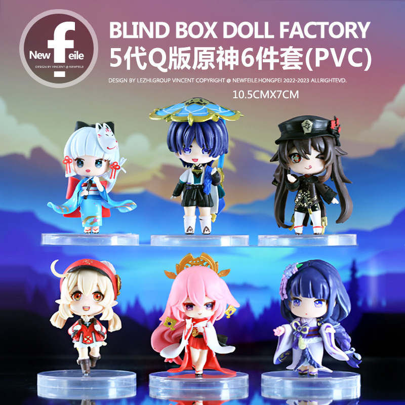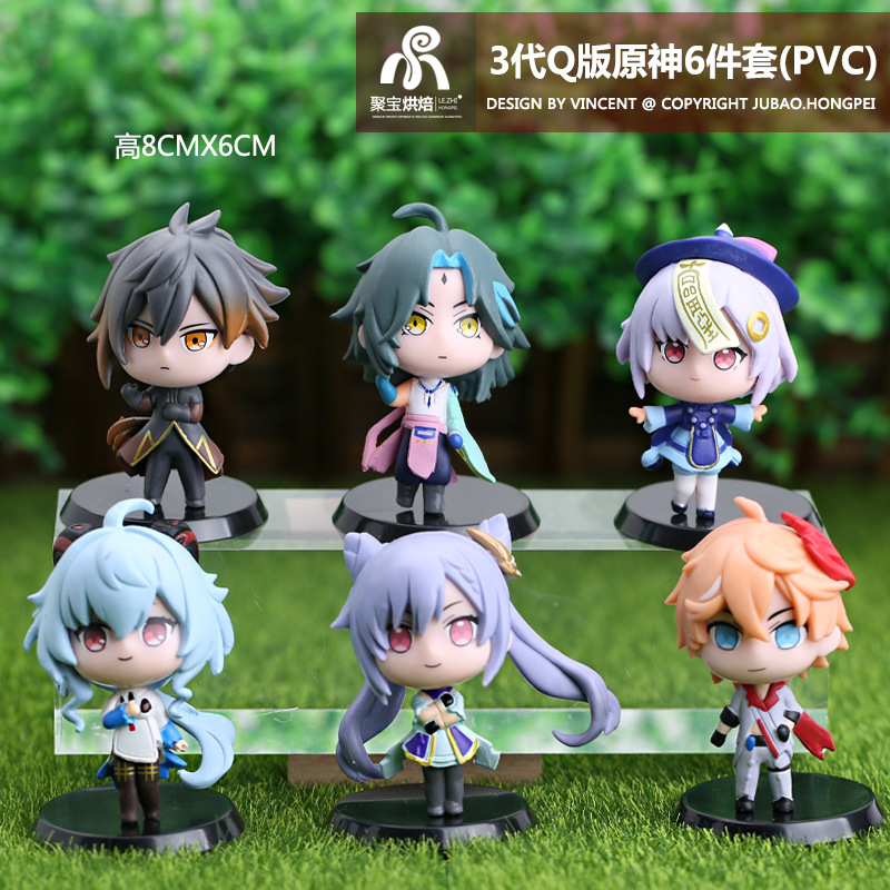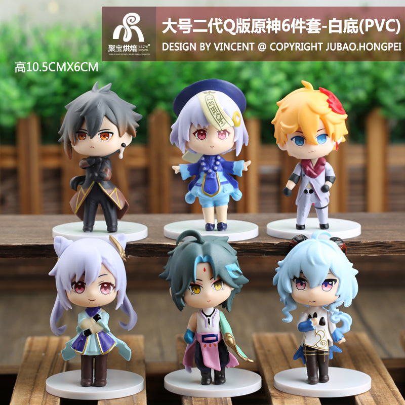 second-generation q version original god 6-piece set-white background (pvc)