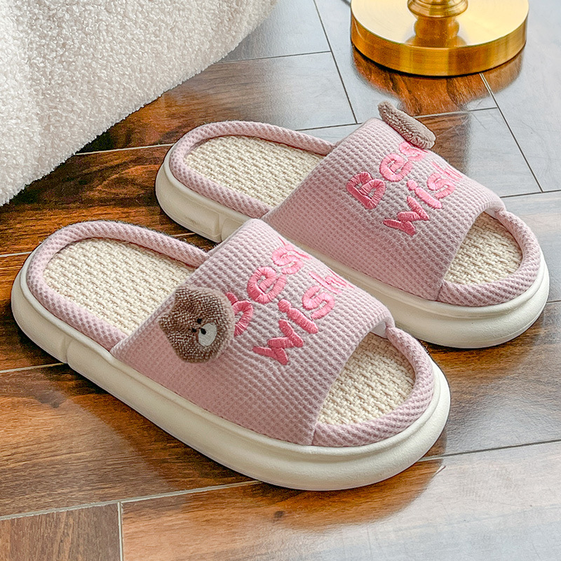 women's thick-soled linen slippers, indoor home non-slip cute outdoor men's summer