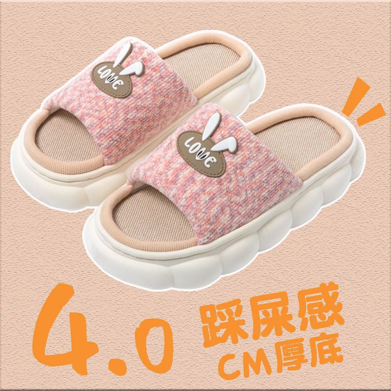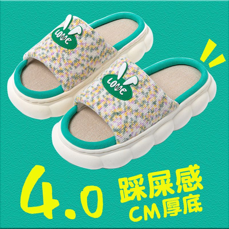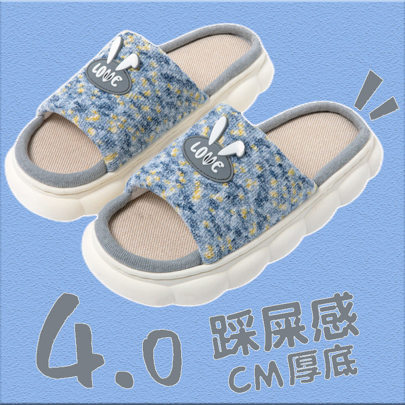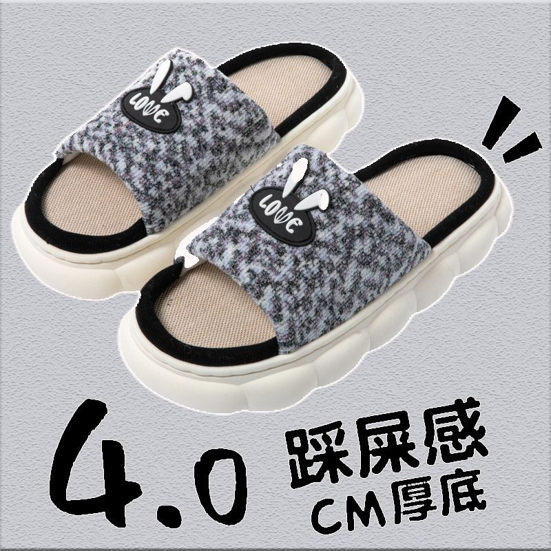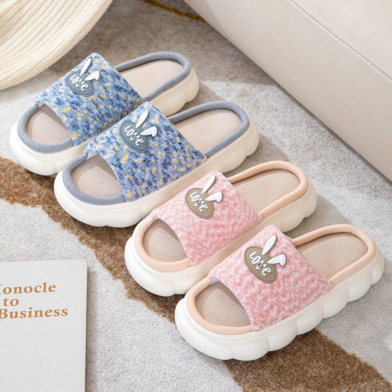 slip-on linen slippers for women summer home indoor and outdoor non-slip thick bottom couple four seasons cotton and linen fabric slippers