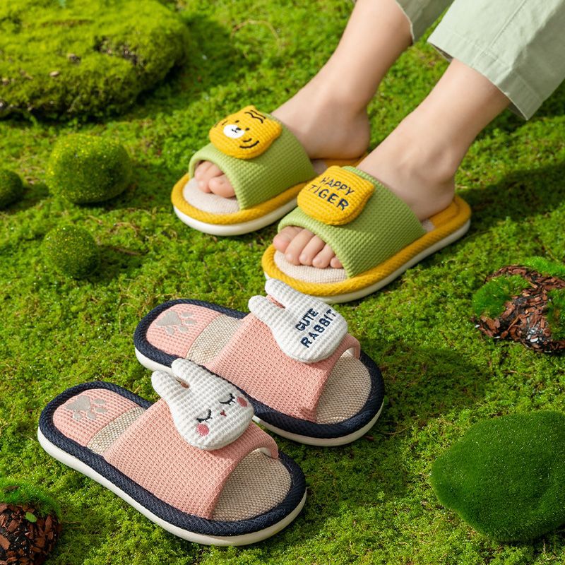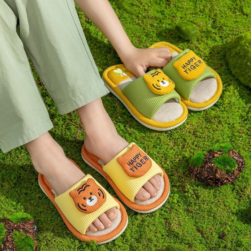 linen slippers for boys and girls spring and summer four seasons cute non-slip breathable indoor household parent-child cotton and linen slippers