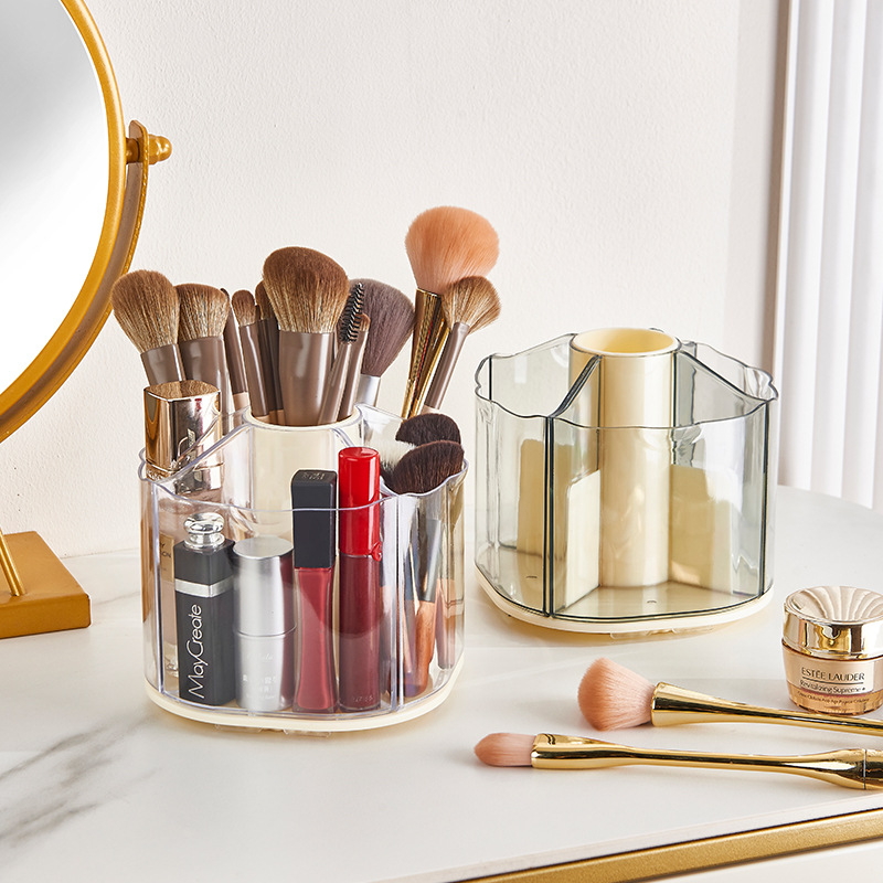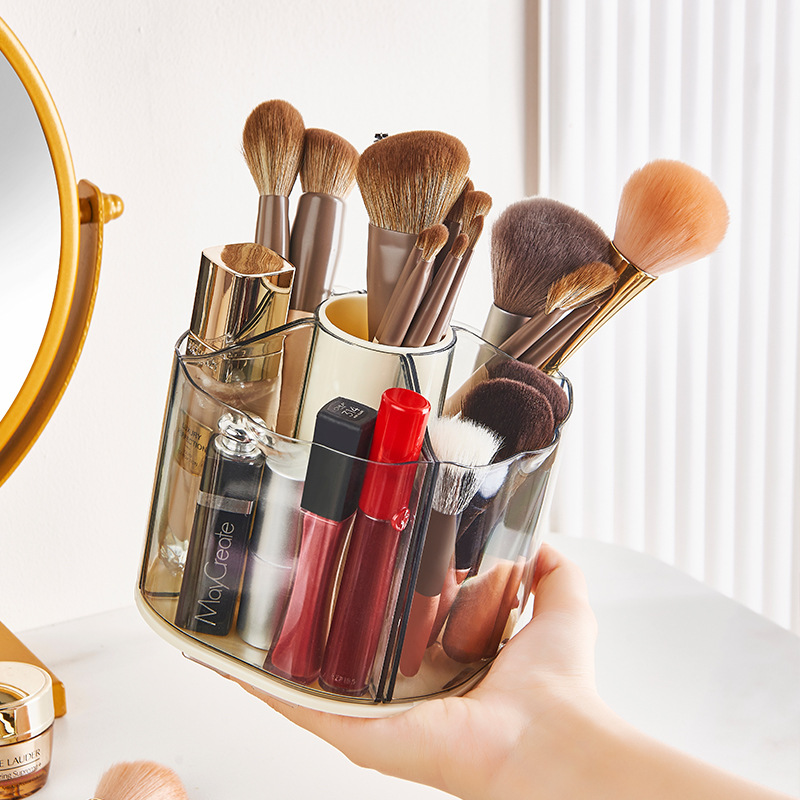 simple transparent lipstick makeup brush storage bucket large capacity desktop stationery storage box multifunctional rotating pen holder