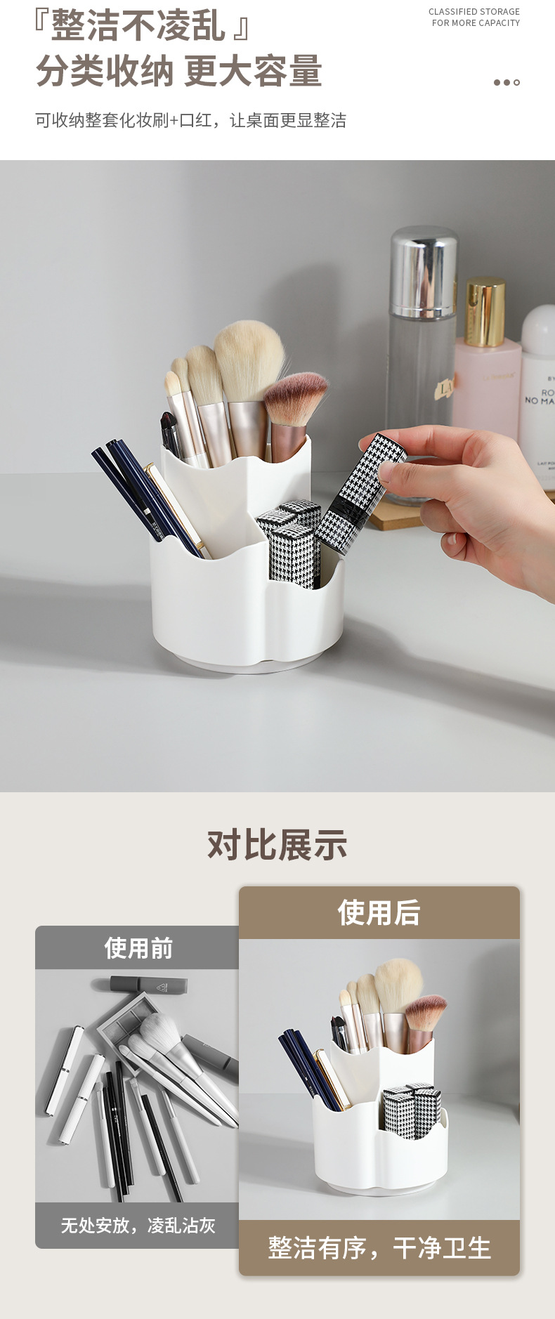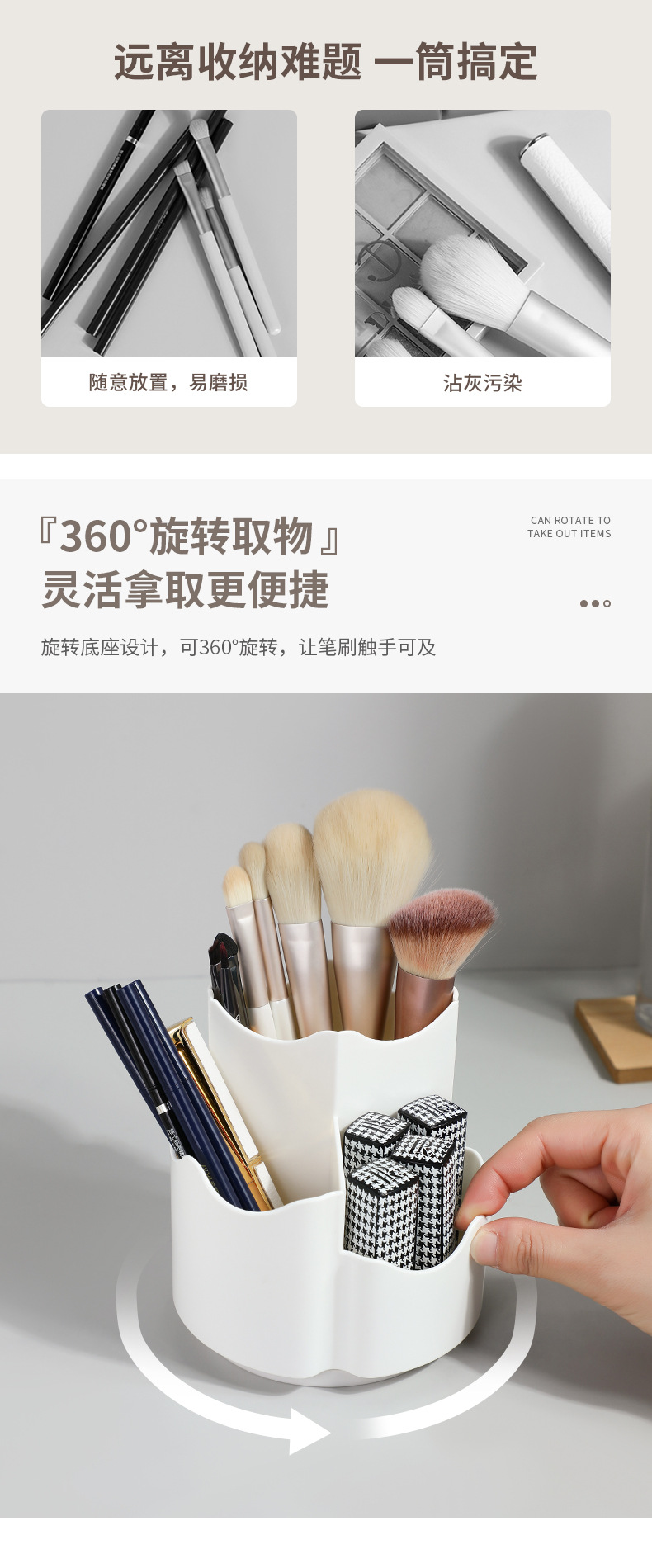 cosmetics storage box rotating dustproof makeup brush storage tube dresser table pen holder lipstick eye shadow storage rack