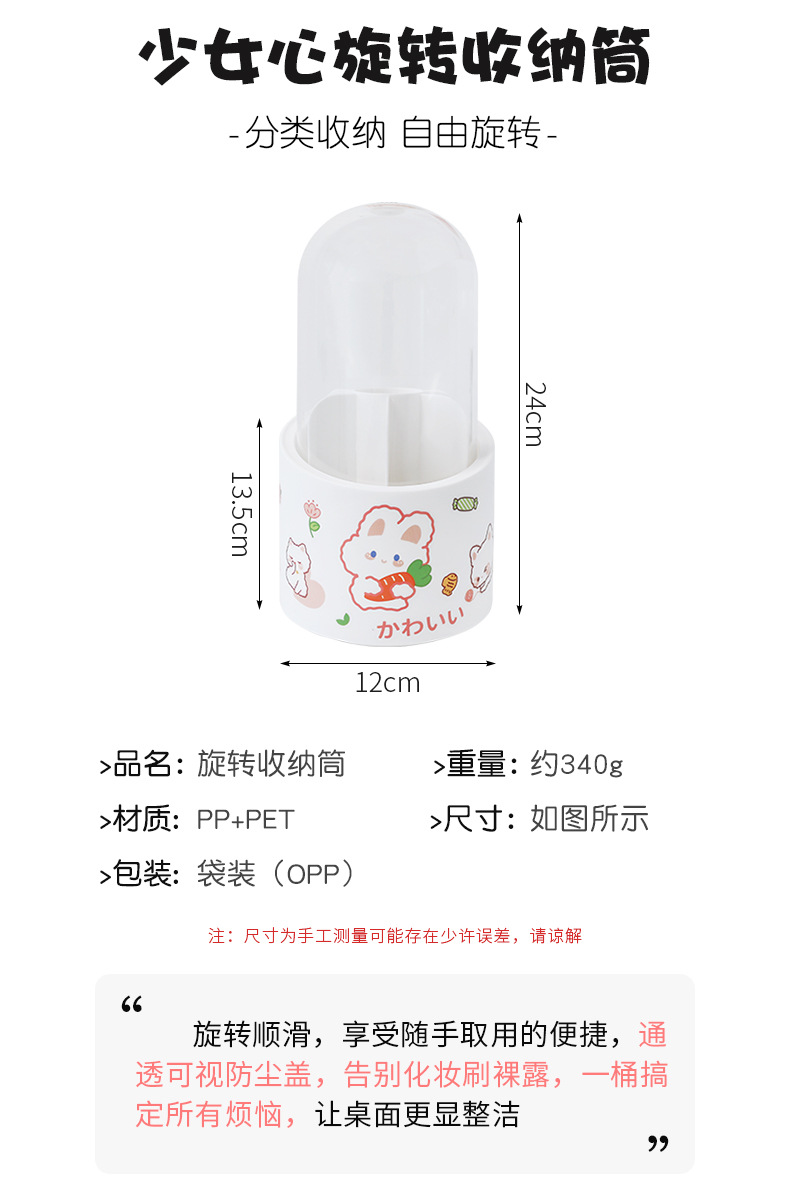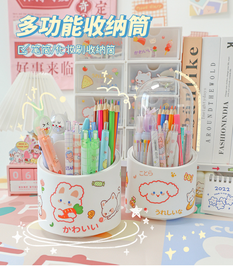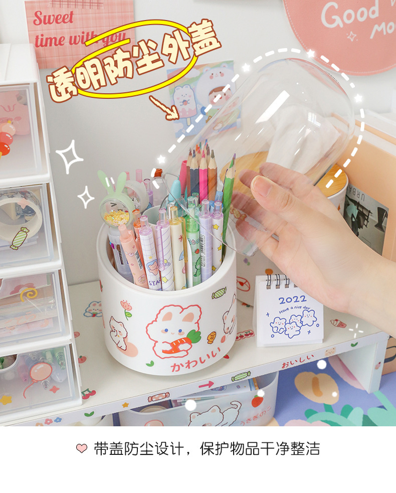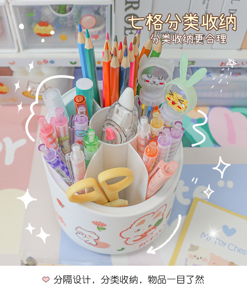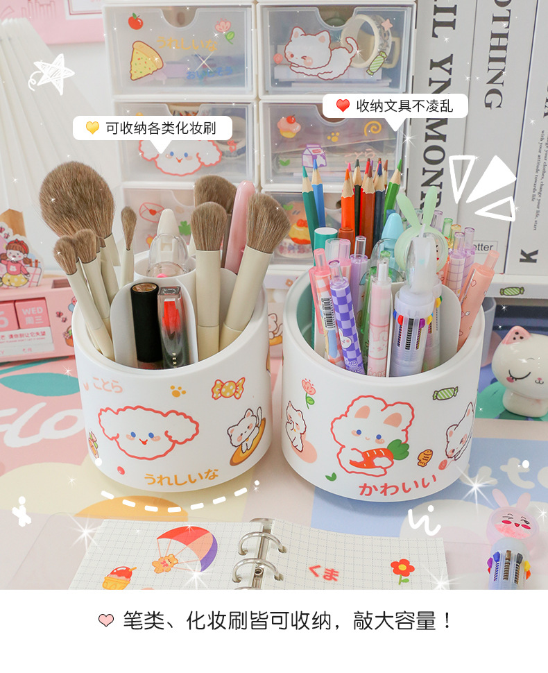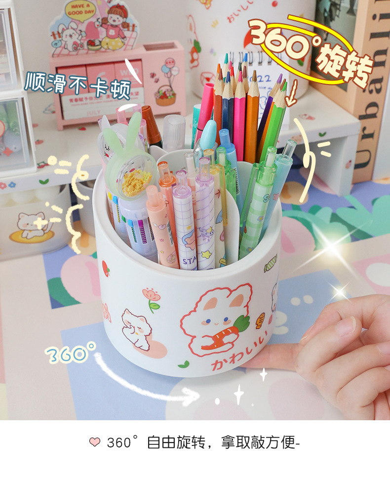 360-degree rotating pen holder ins style large capacity children girl cute office desk surface panel ornaments stationery storage box
