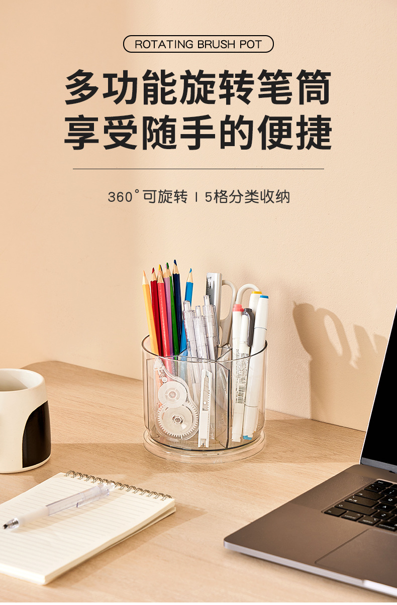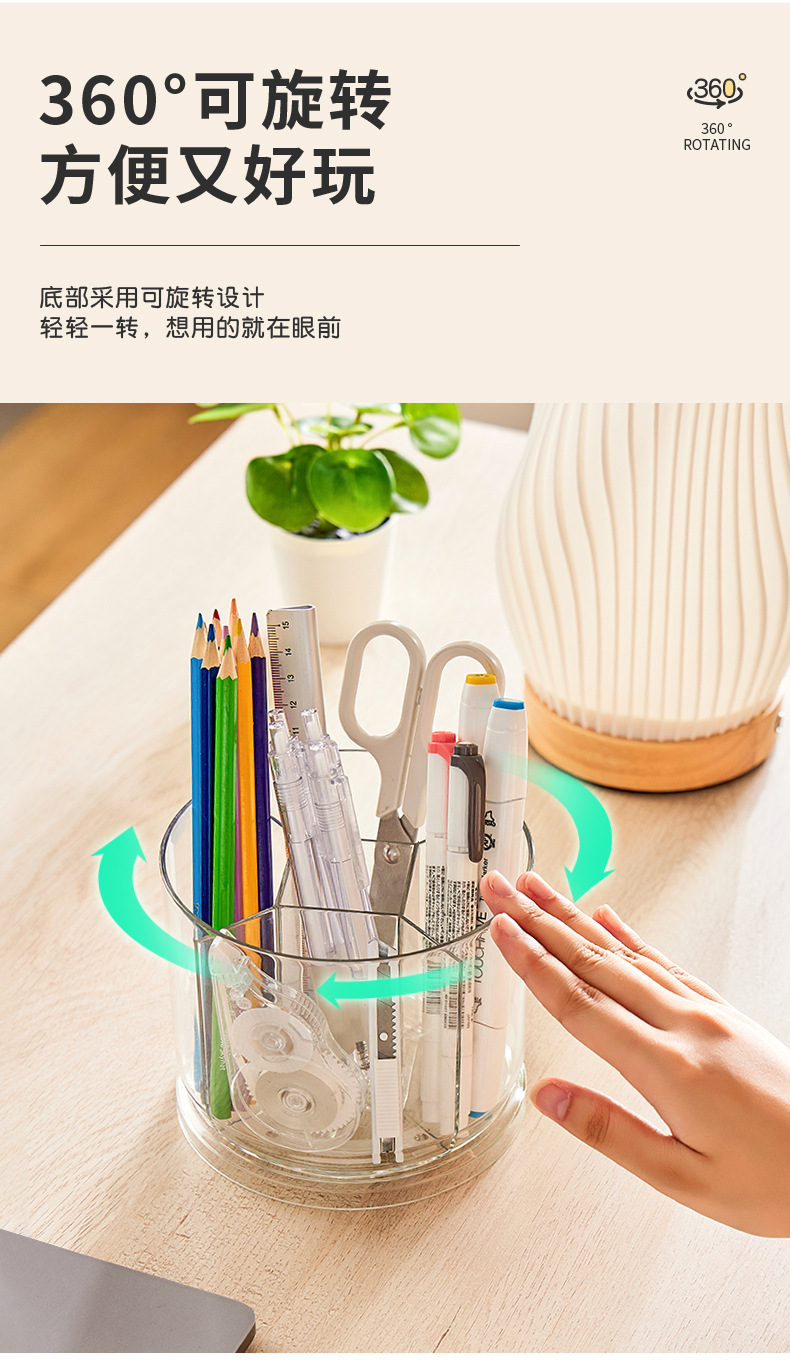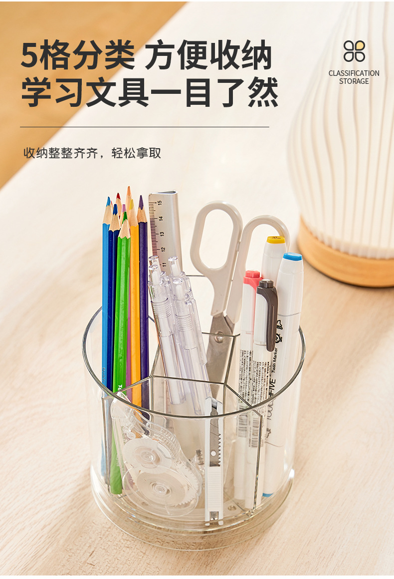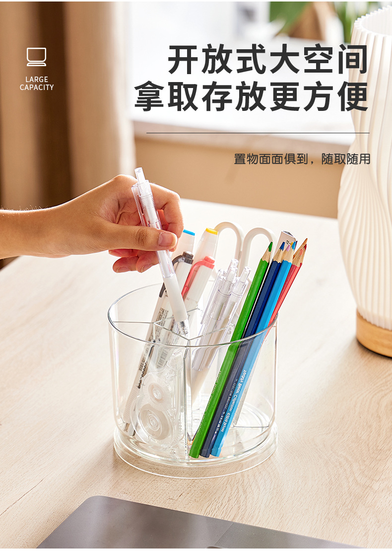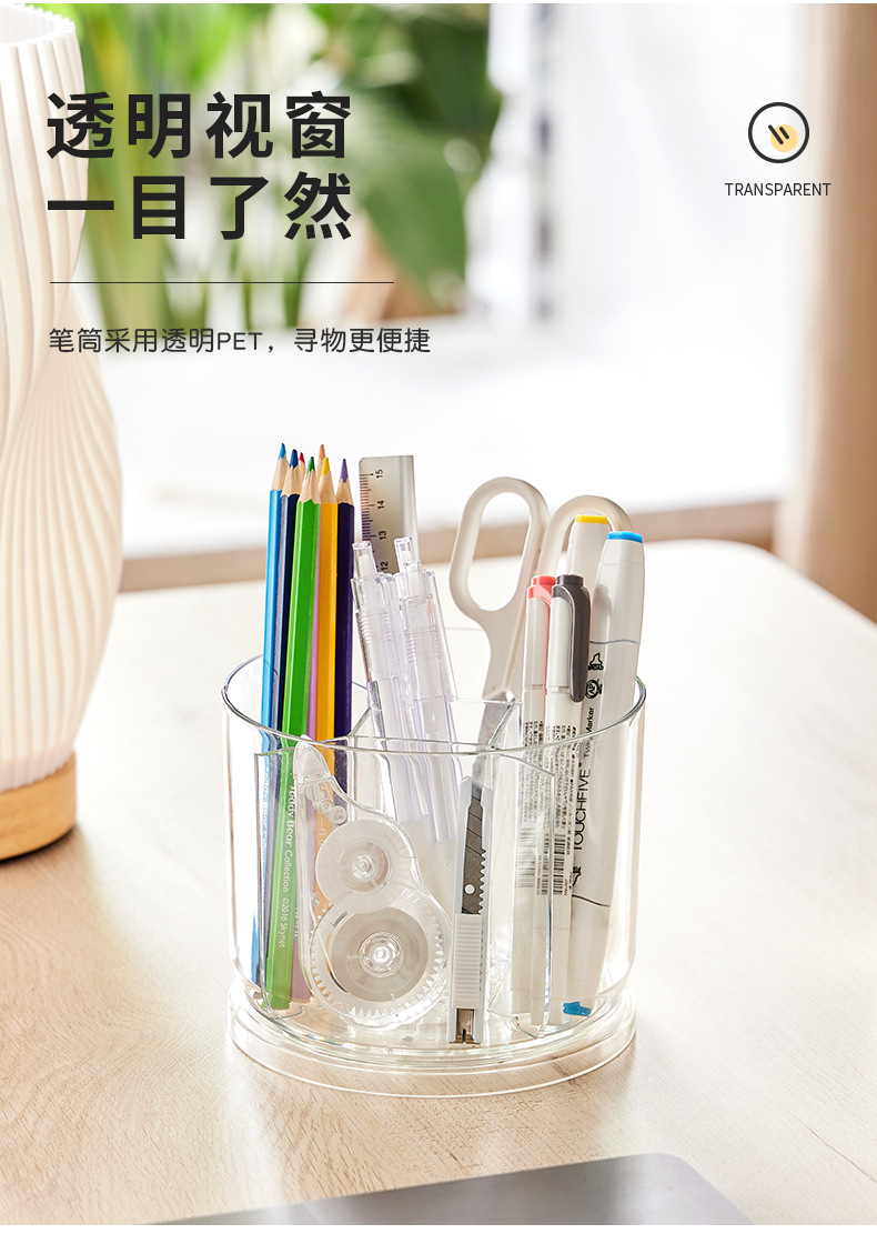 rotatable pen holder large capacity transparent acrylic compartment pen holder student desktop desk learning pencil storage box