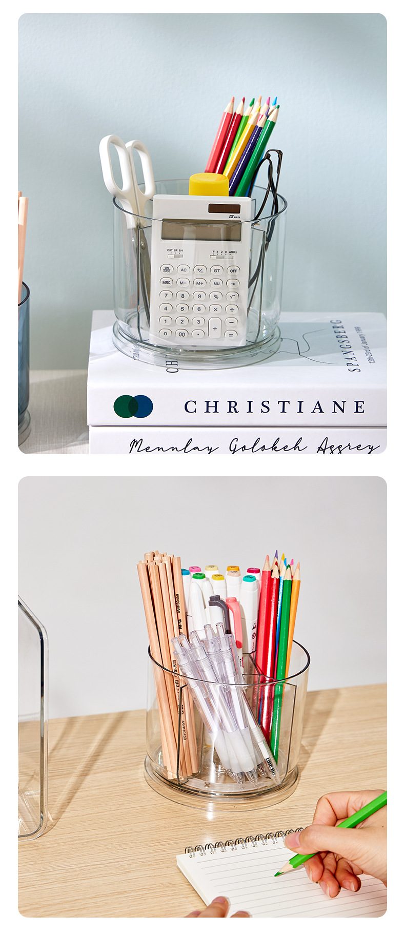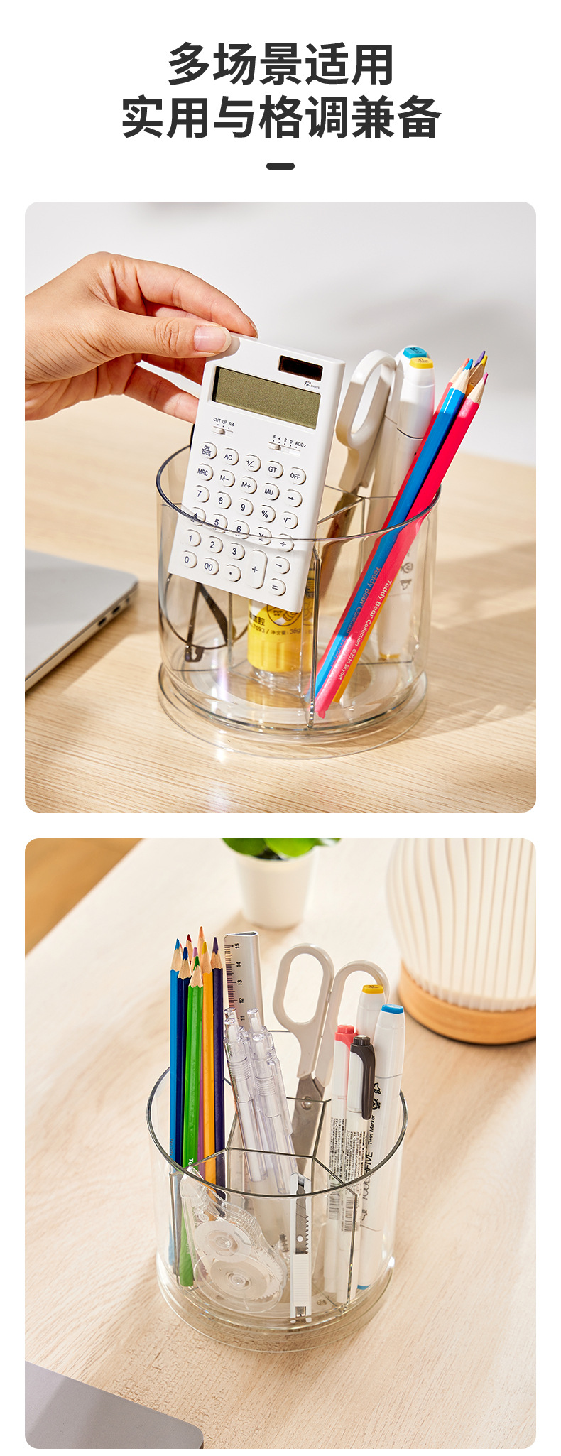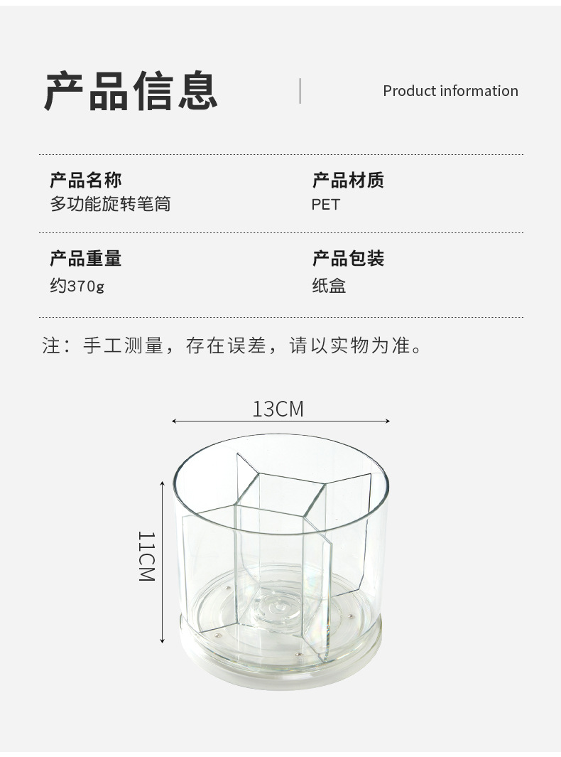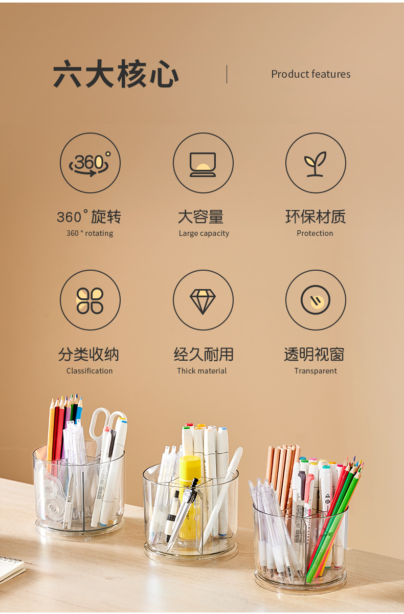 rotatable pen holder large capacity transparent acrylic compartment pen holder student desktop desk learning pencil storage box