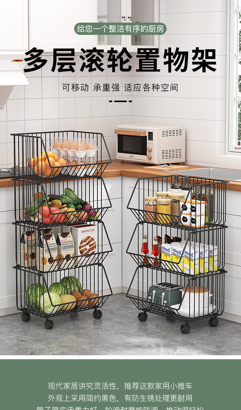 Multi-Functional Kitchen Vegetable Rack Fruit Storage Rack Punch-Free Multi-Layer Floor Storage Rack Storage Basket Basket