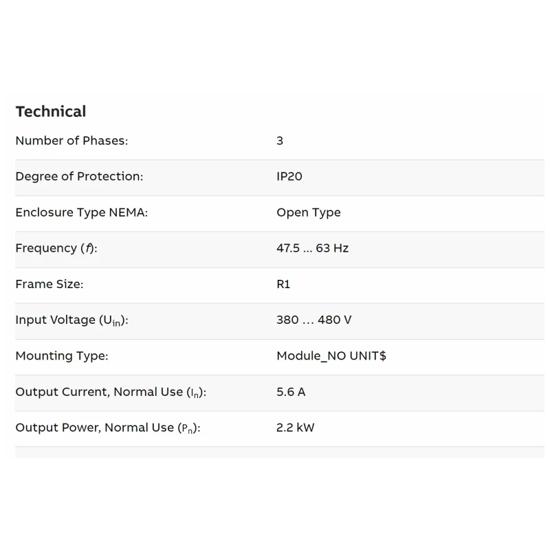 The ACS355 drives are designed to meet the requirements of an extensive range of machinery applications in food and beverage,material handling, lifting, textile, printing, rubber and plastics, and woodworking applications. The drive are user-friendly, yet provide a wide range of built-in technology, such as the safe torque off functionality and sequence programming, reducing the need for additional control electronics. The product offers options and diverse functionality to cater to the needs set for speed and torque control of AC induction and permanent magnet motors.