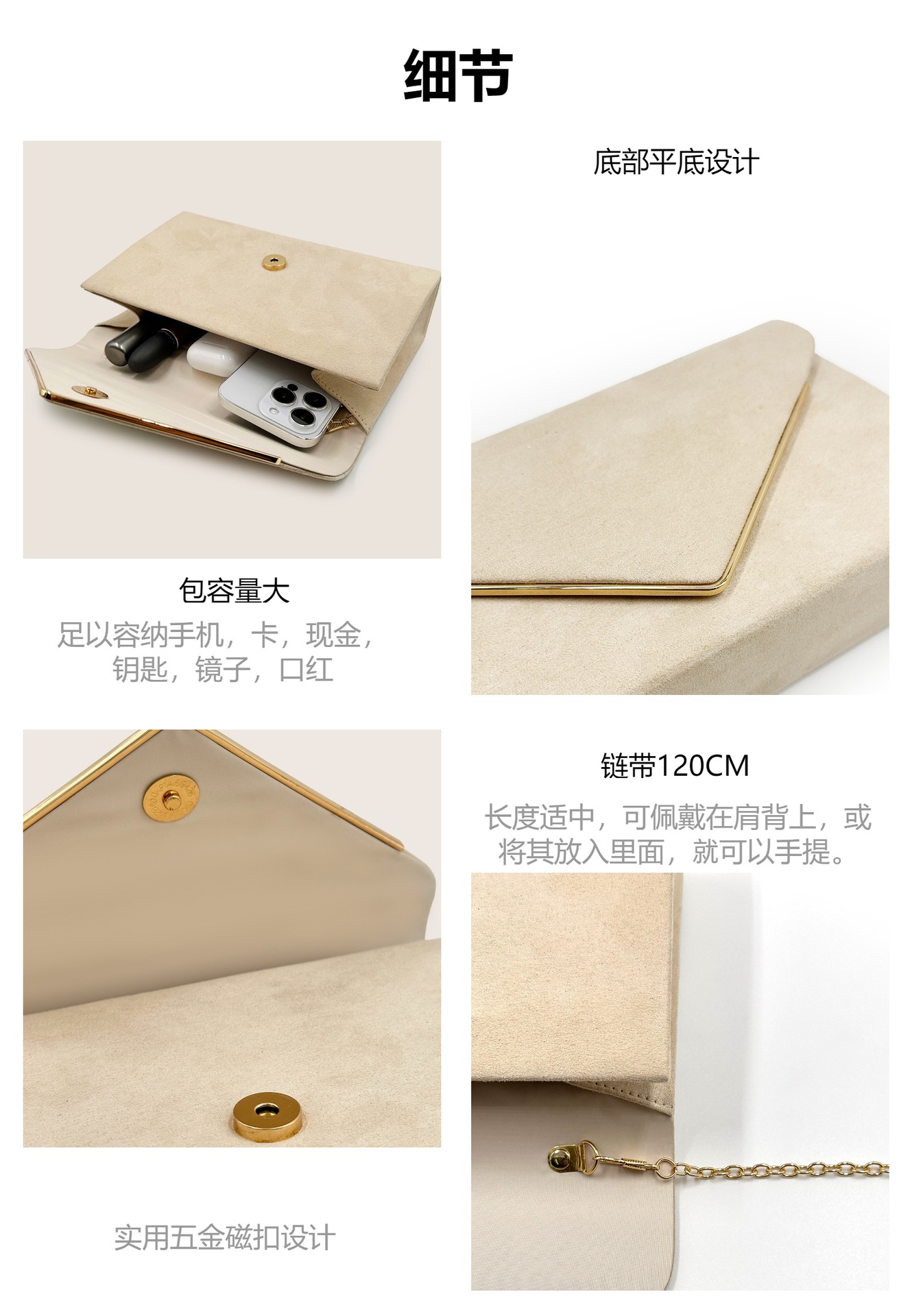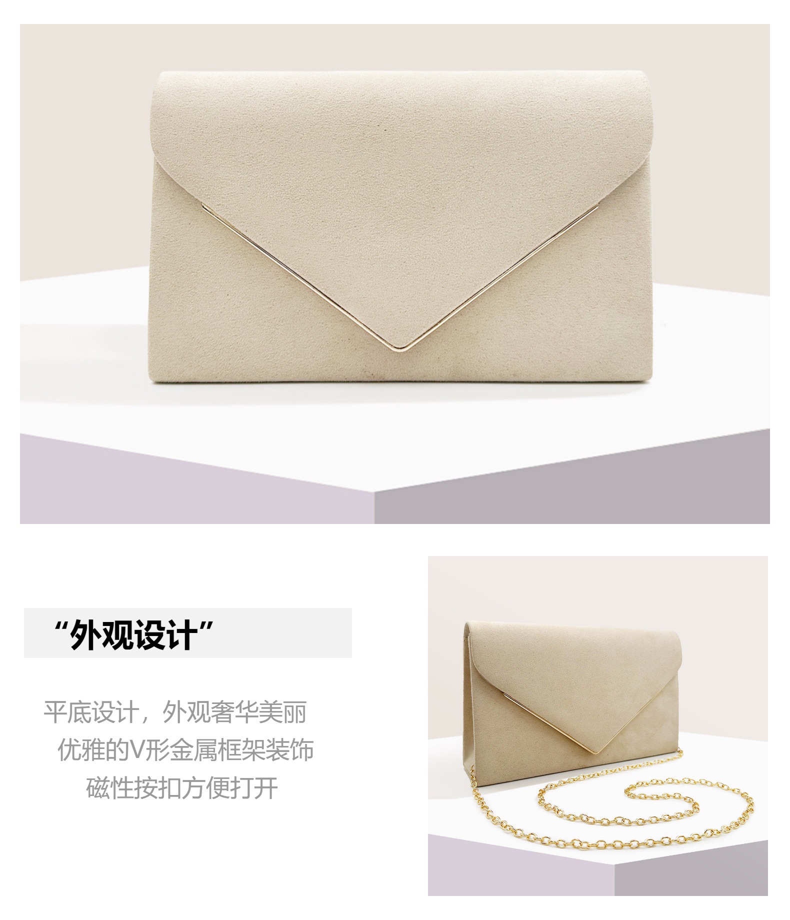 Large V Suede Envelope Package Ladies Dinner Bag High-Grade Hand Chain Bag