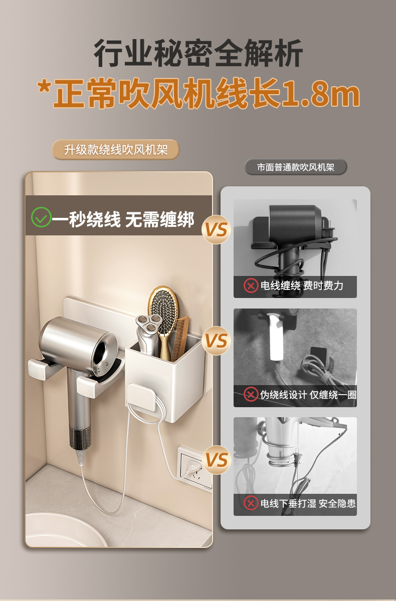 gun gray-hair dryer rack rear winding storage (punch-free)