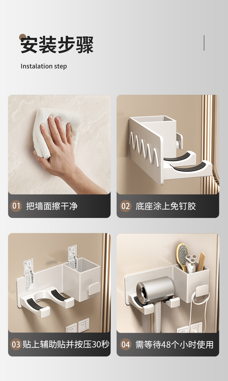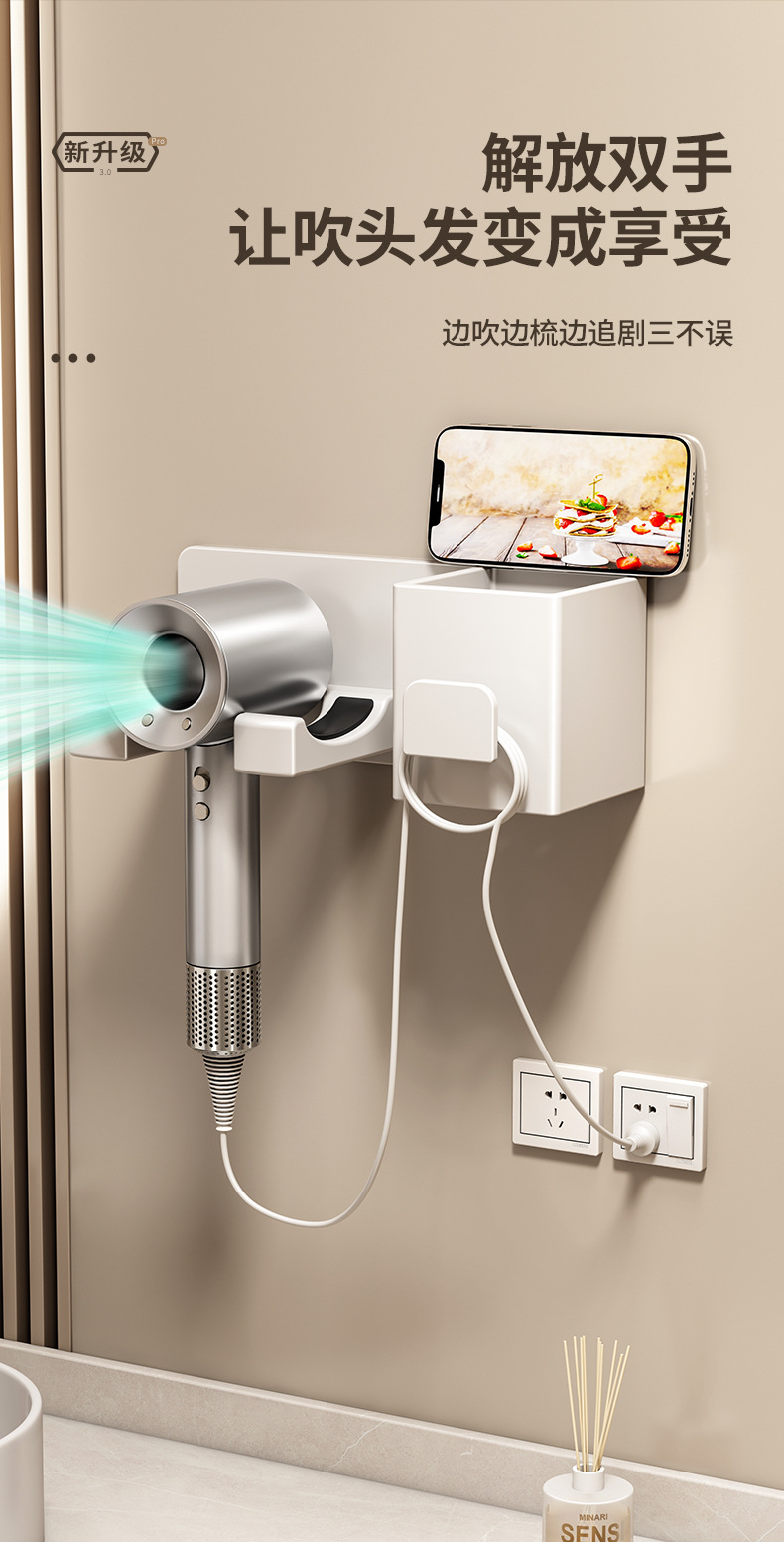 gun gray-storage hair dryer rack (punch-free)