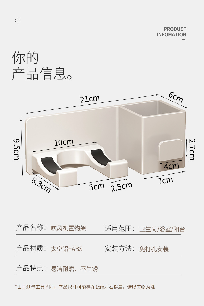 white-storage hair dryer rack (punch-free)