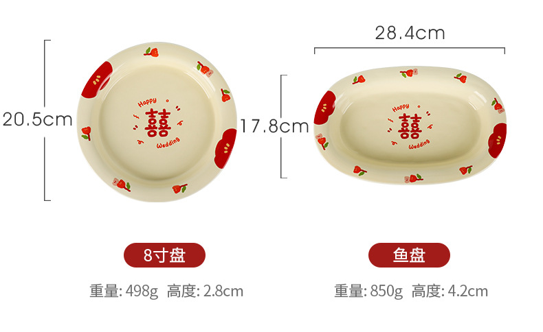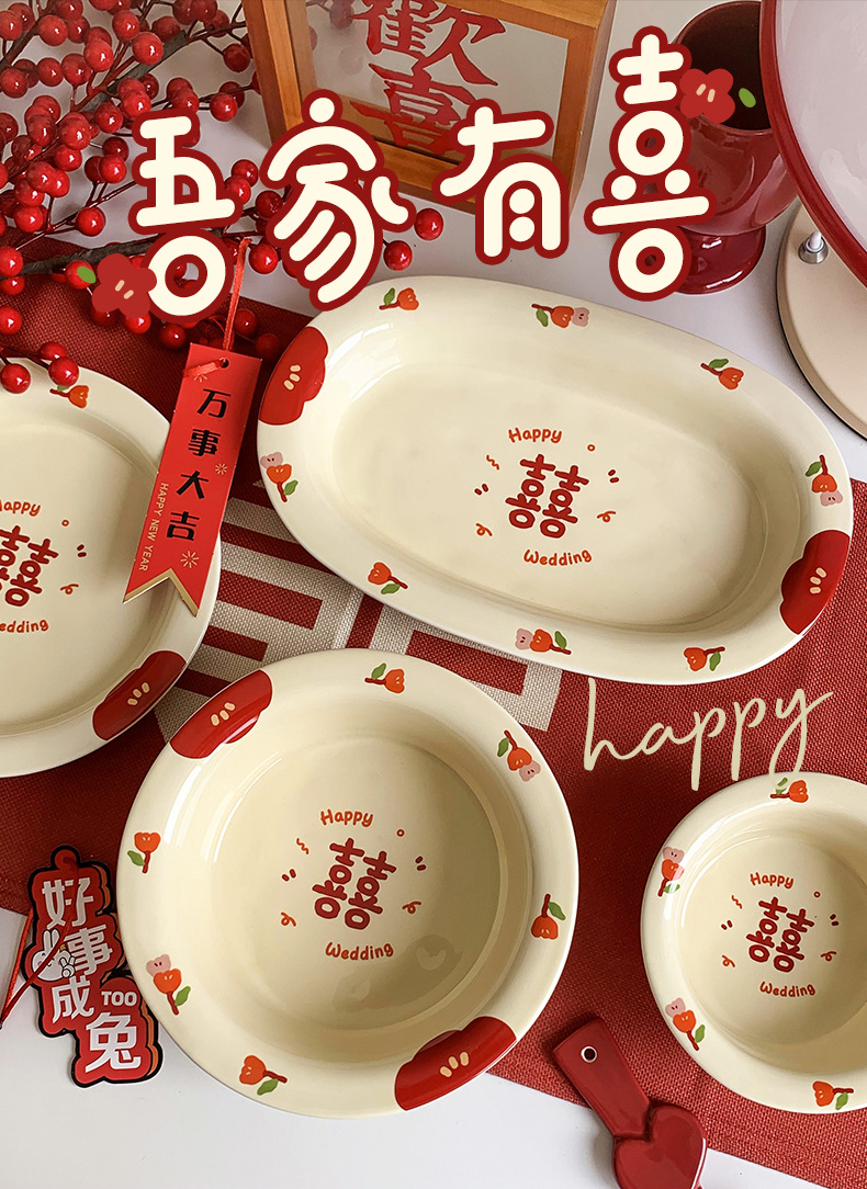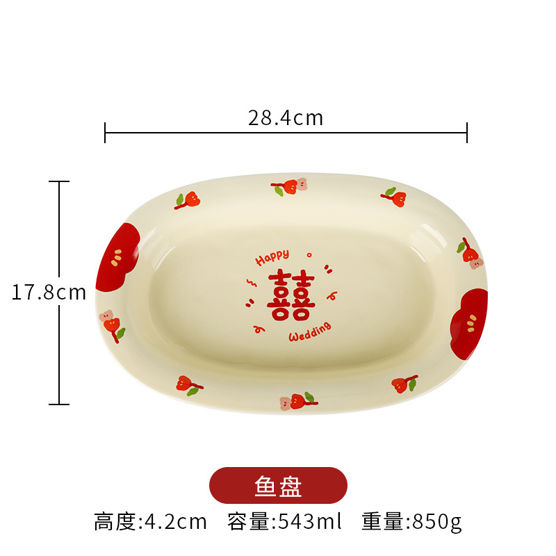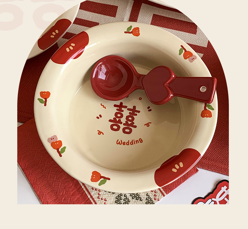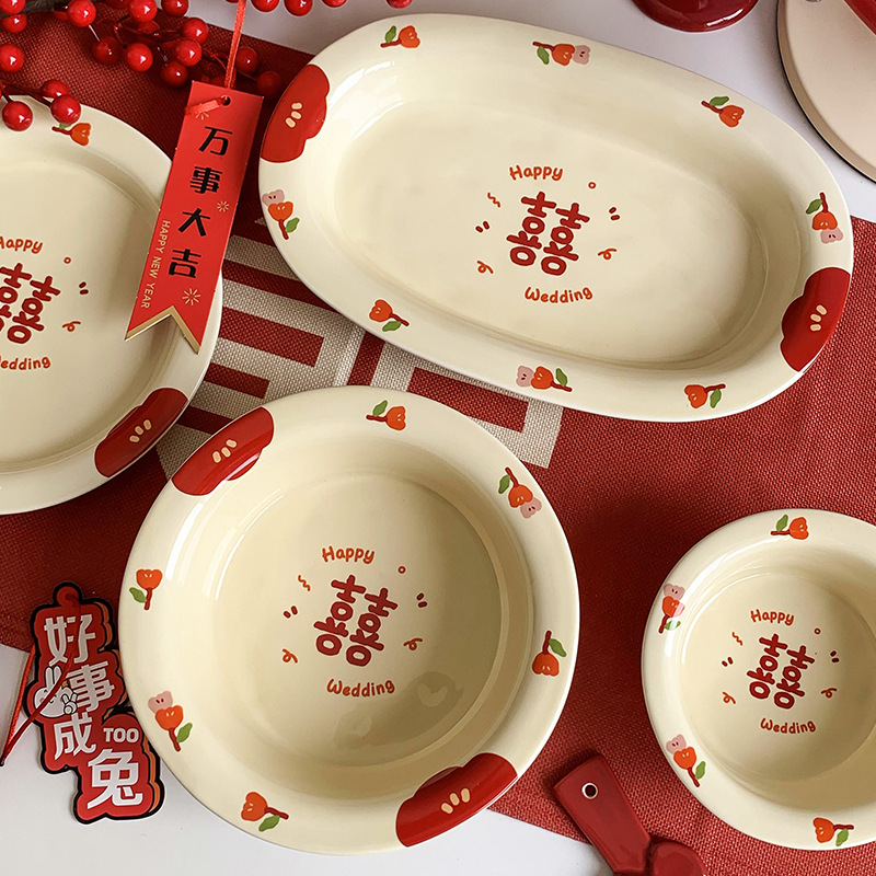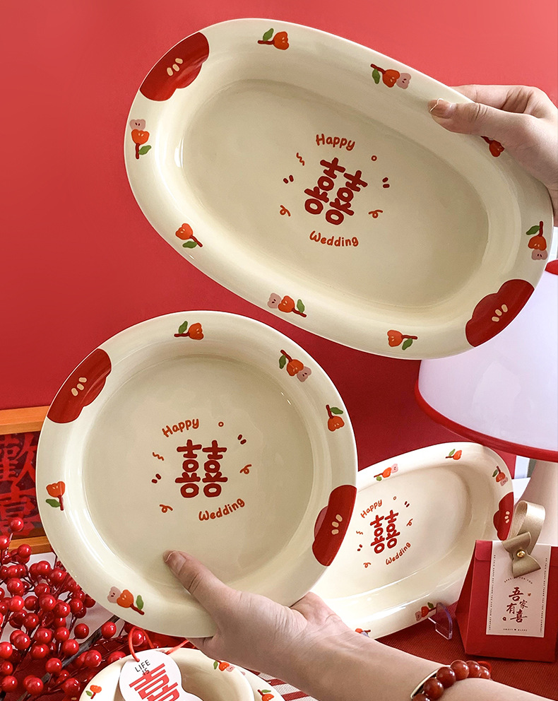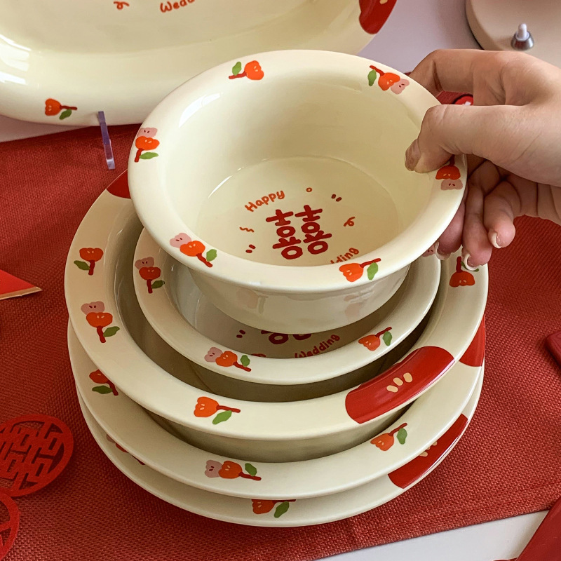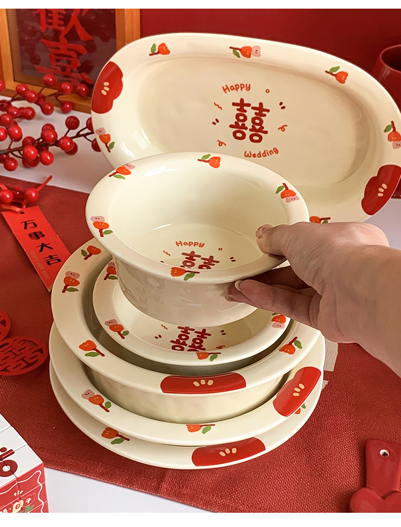 Double Xi Character Engagement Gift Chopsticks Tableware Set for New Couple Ceramic Girlfriends Dowry for Bride Rice Bowls and Chopsticks Combination