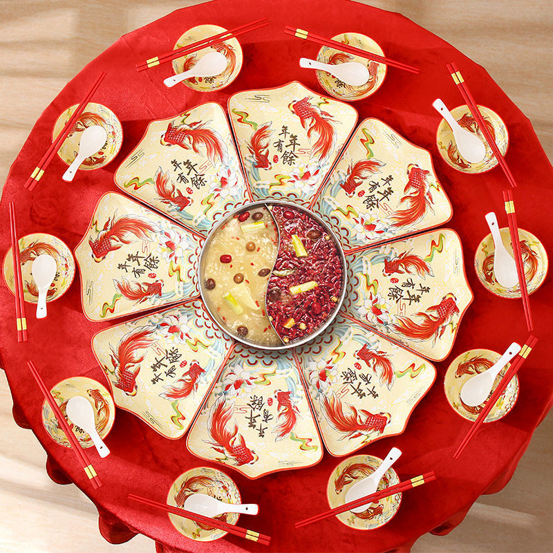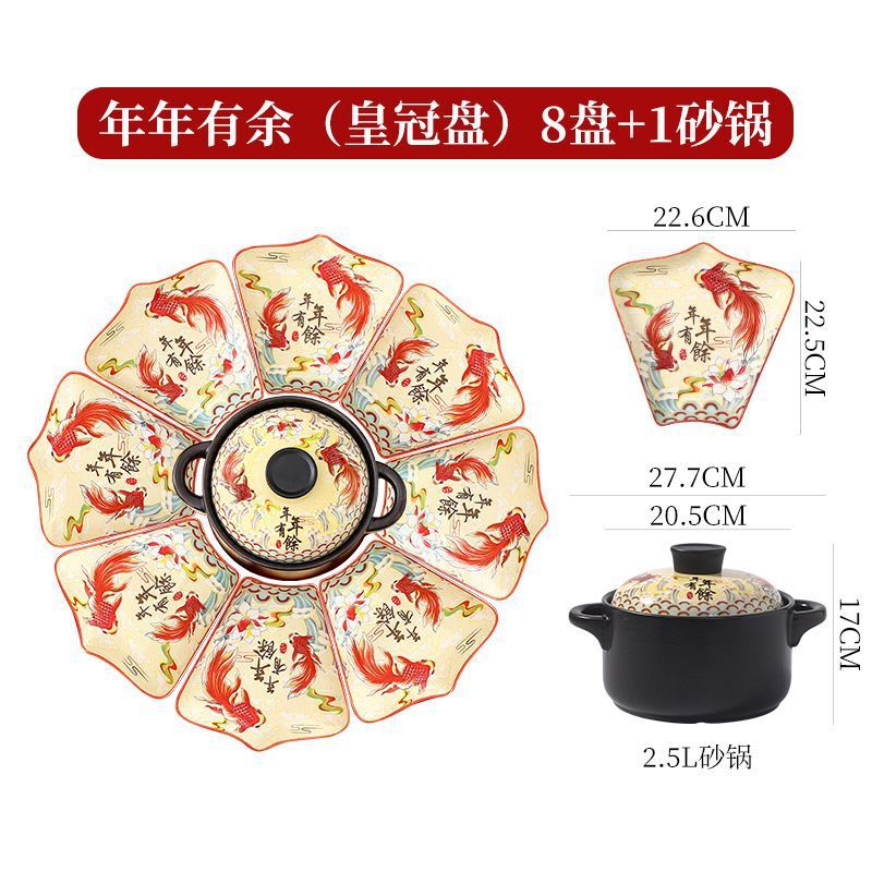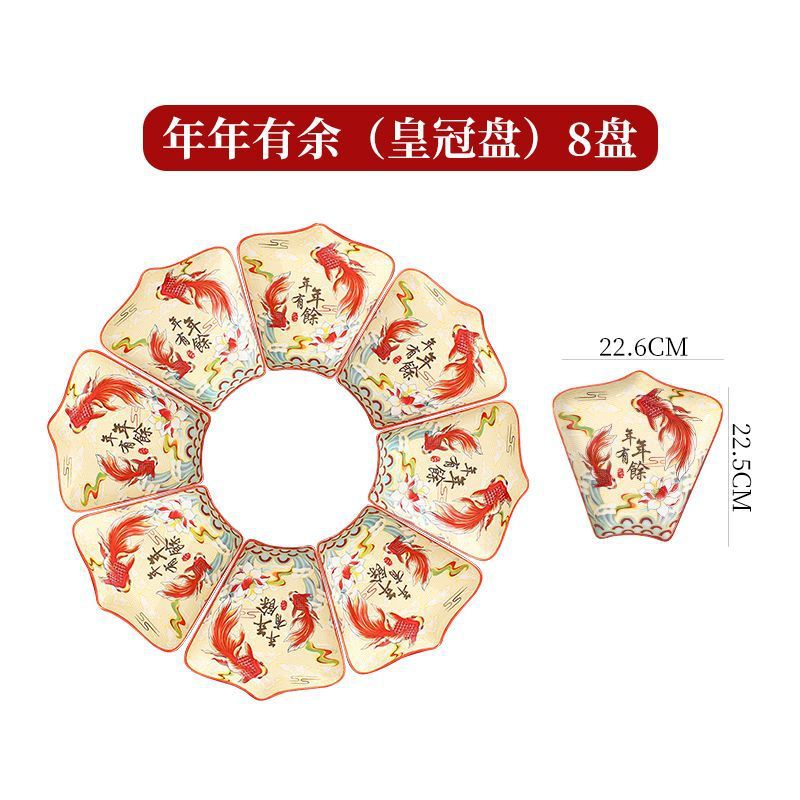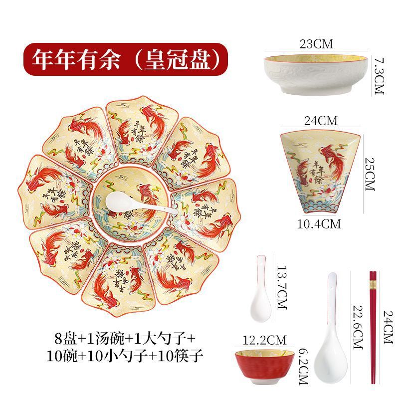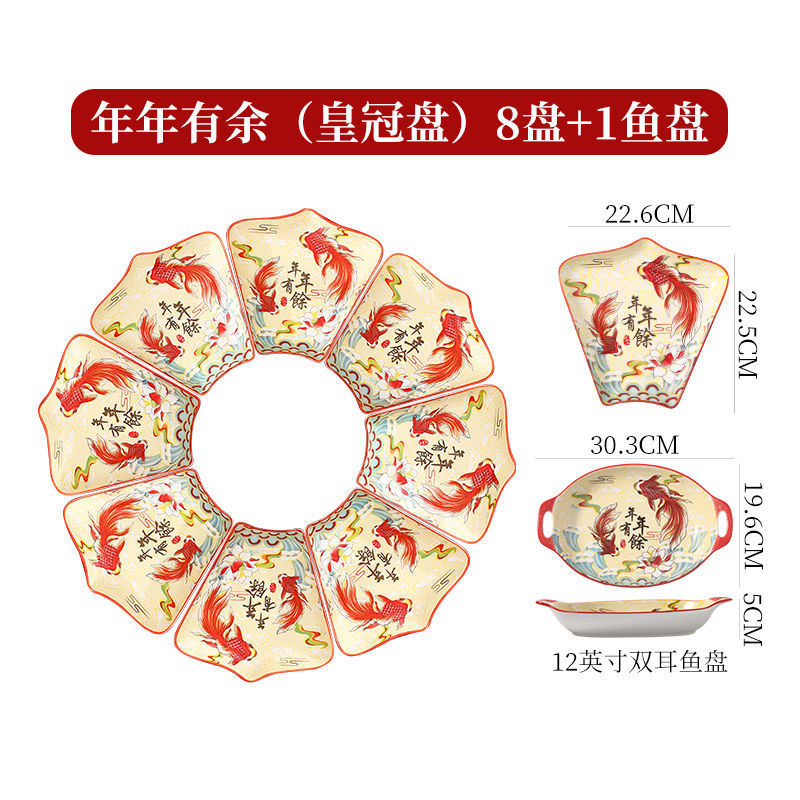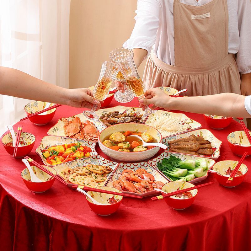 Net Red Ceramic Plate Tableware Combination New Year Reunion New Year's Eve Dinner Chinese Fan-Shaped Plate Creative Bowls and Dishes Set Home