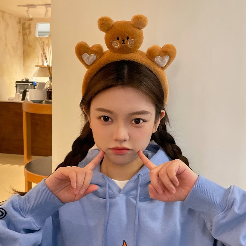 Internet Celebrity 2023 New Three-Dimensional Doll Plush Cute Headband Super Cute Cartoon Rabbit Frog Face Wash Hair Band Hairpin