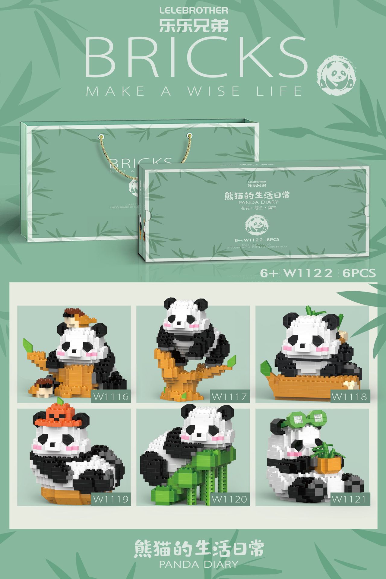 menglanxue eating bamboo shoots [1541 particles color box package]]