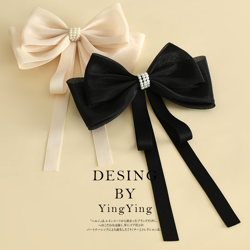 Spot Yiwu Factory Headdress Bow Hair Accessories Ribbon Hairpin Pearl Back Head Spring Clip Hairpin Wholesale