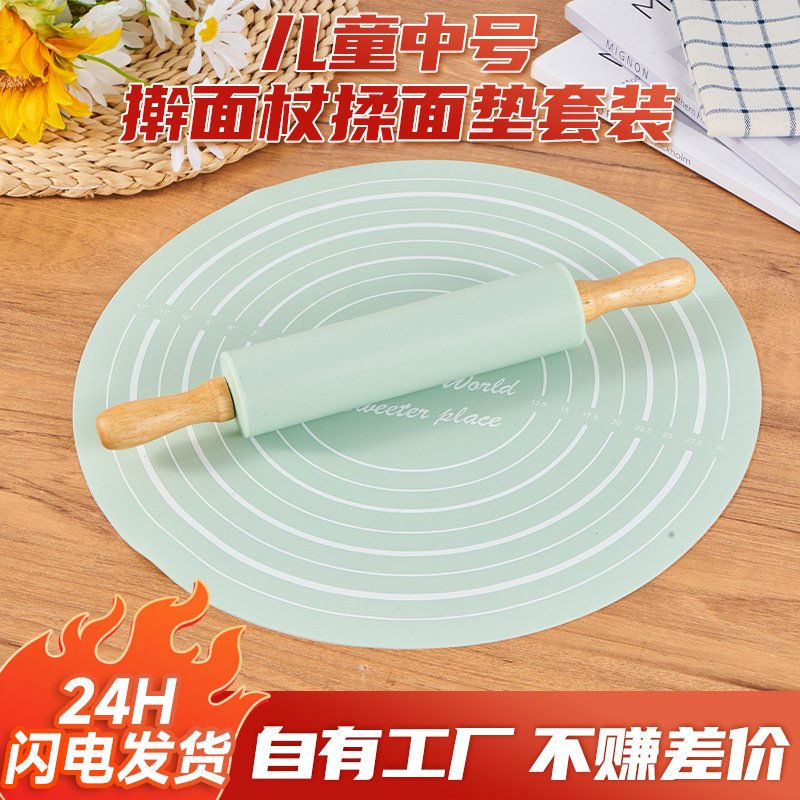 Medium-Sized Dumpling Rolling Mat Pieces Silicone Rolling Pin Set Kneading Mat Baking Mat Mat Baking Flour Pad Non-Stick