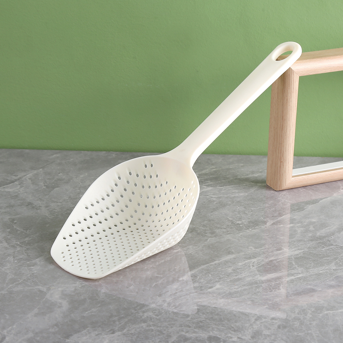 Household Kitchen Long Handle Colander Filter Noodles Strainer Scoop up Dumplings Spoon Draining Spoon Household High Temperature Resistant Thickening plus Size Perforated Ladle