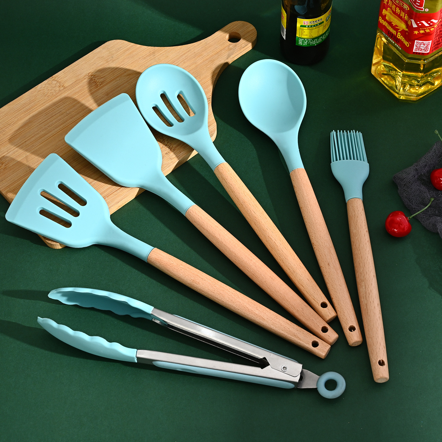 Cross-Border Household Edible Silicon Kitchenware Powder Claw Slotted Turner Spoon Kitchenware 10-Piece Kitchen Cooking Spatula for Non-Stick Pan