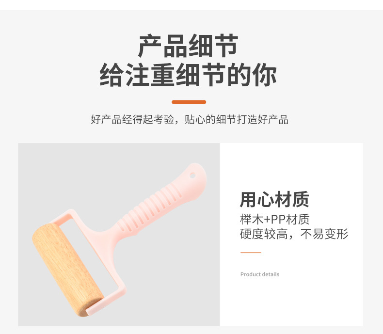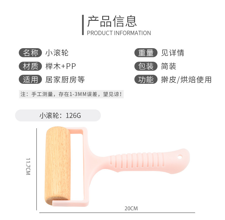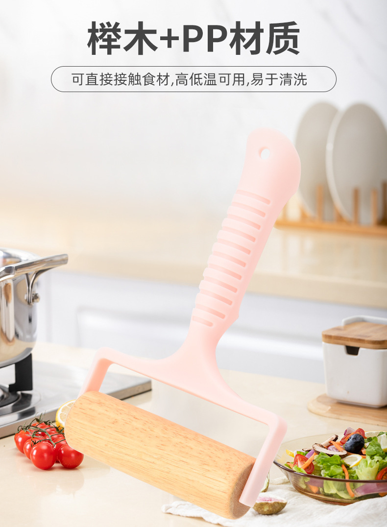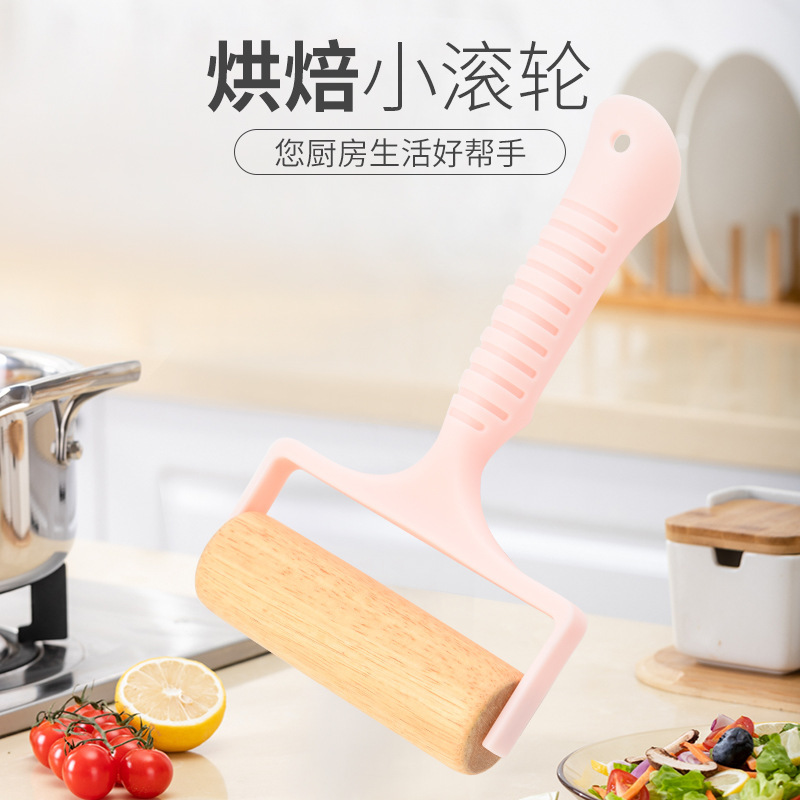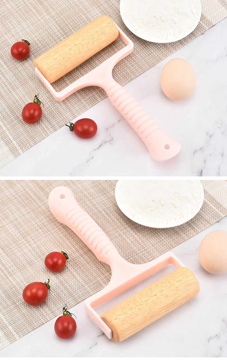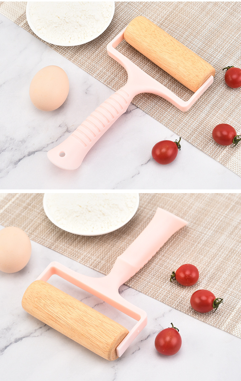 Cross-Border Beech Roller Rolling Pin Manual Roller Flour Stick Nordic Style Small Handheld Plastic Handle Rolling Pin