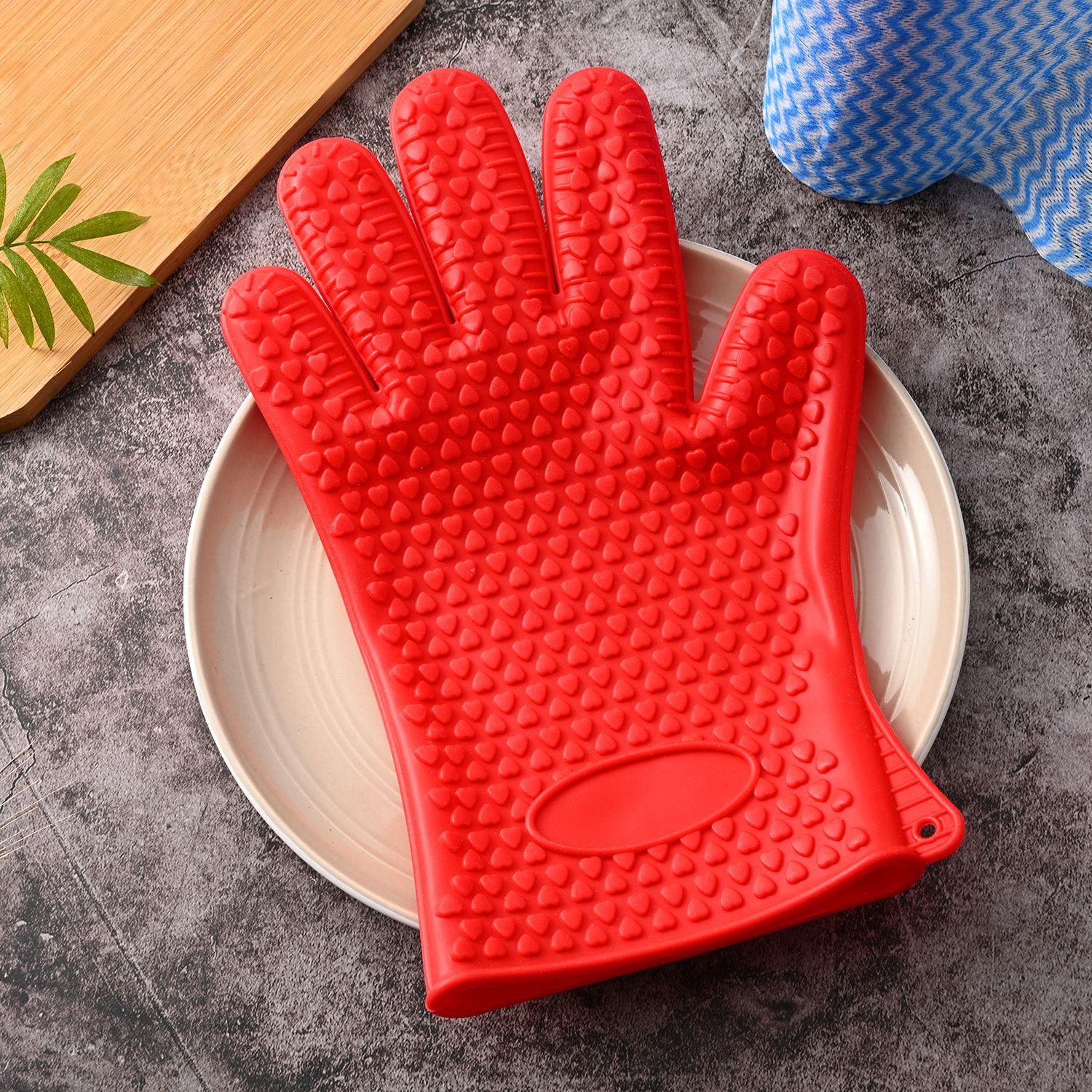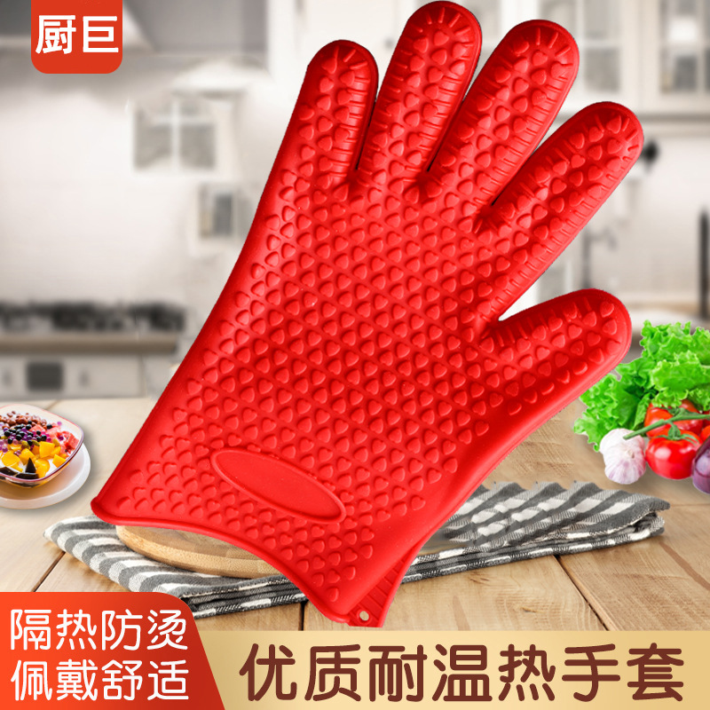 Wholesale Microwave Oven Heatproof Baking Five Finger Gloves Oven Heat Insulation Anti-Scald Household Edible Silicon Gloves