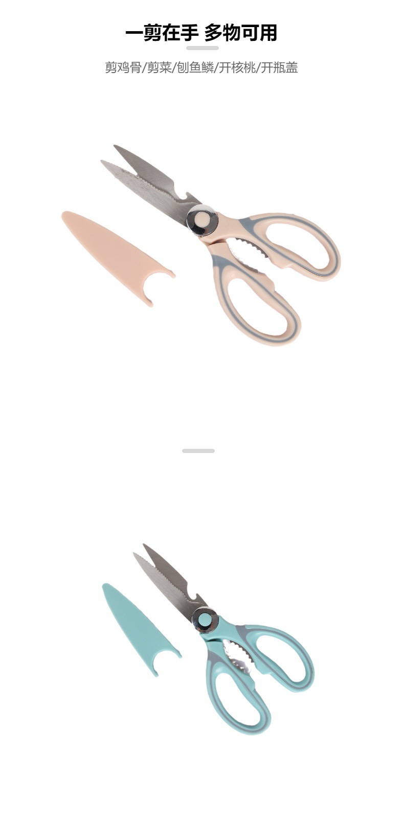 Cross-Border Multi-Functional Food Fish Bone Scissors Household Kitchen Chicken Bone Scissors Stainless Steel Bottle Opener Panda Scissors in Stock