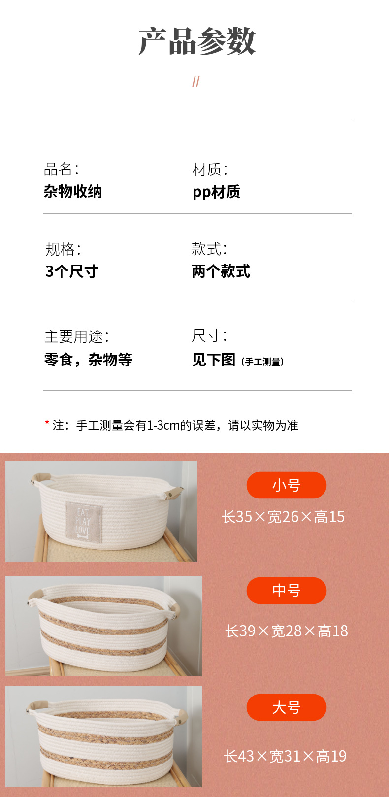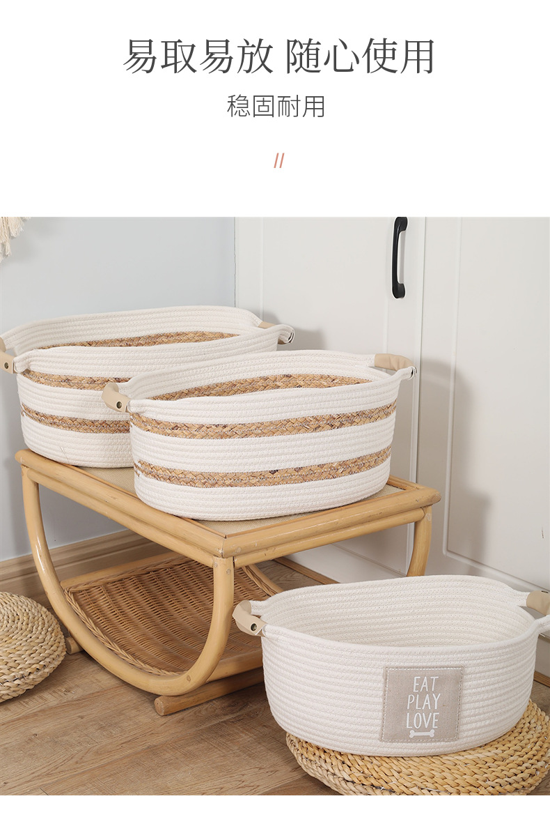 hand-woven cotton string baskets household toys dirty clothes storage basket woven storage folding laundry basket wholesale