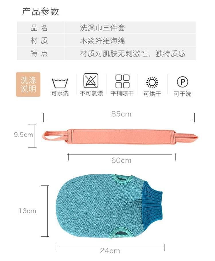 nordic blue bath three-piece gloves + strip + foaming net ball