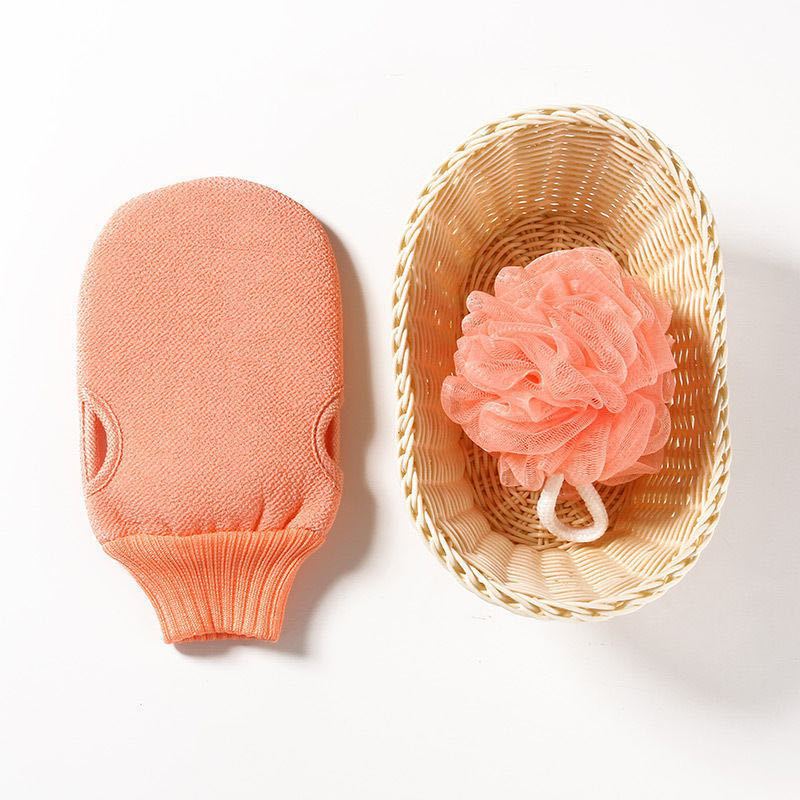 romantic pink color +1 bath gloves +1 foaming net ball