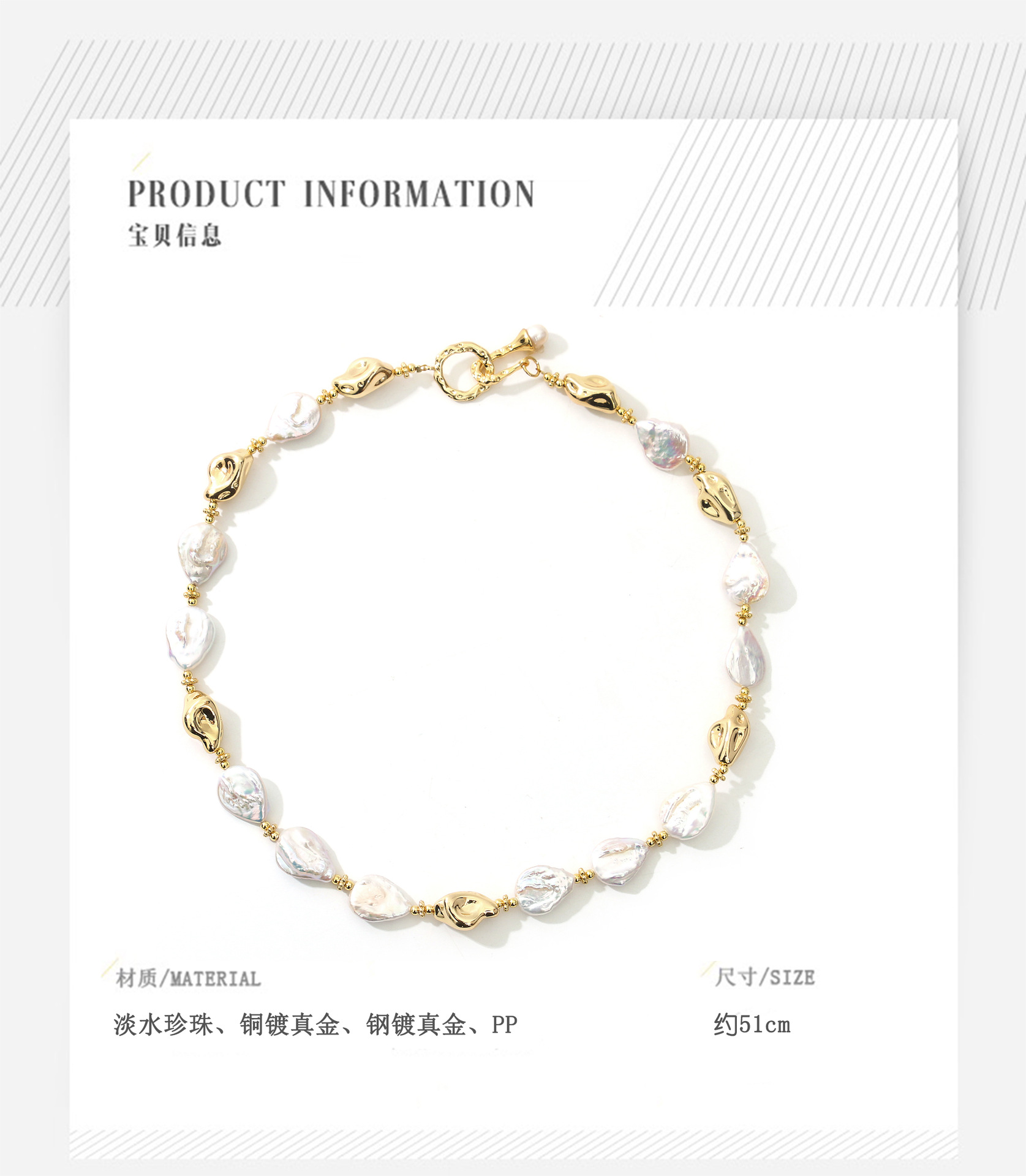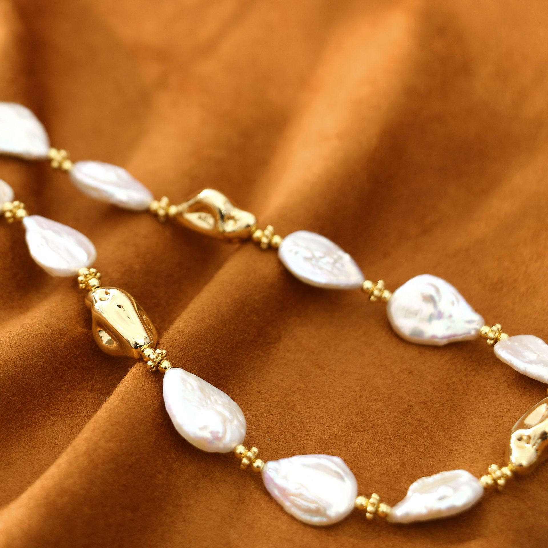 water drop button baroque necklace
