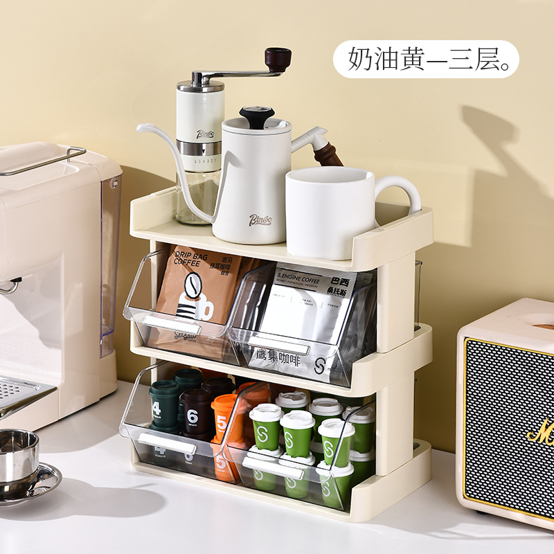 tea bag rack three-layer cream yellow