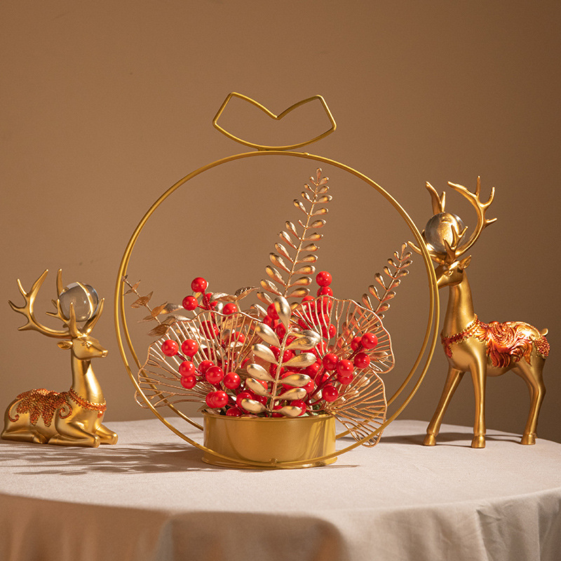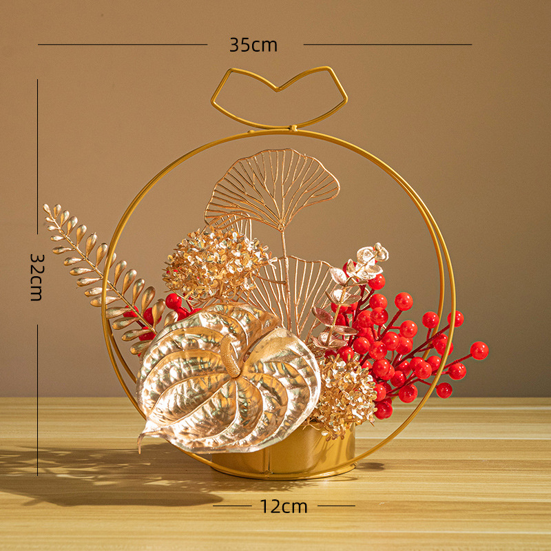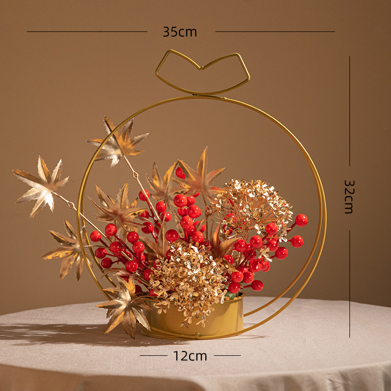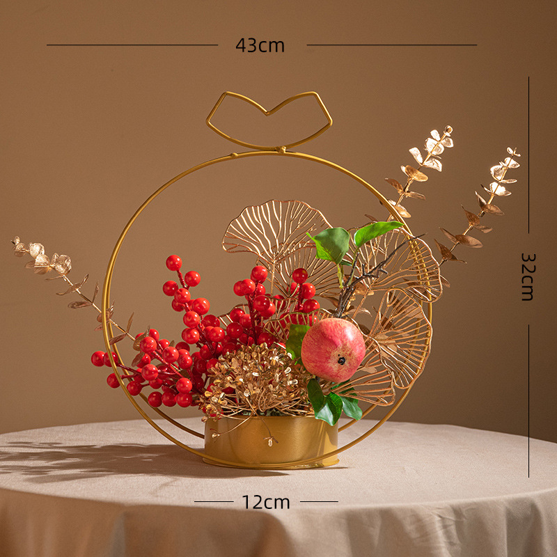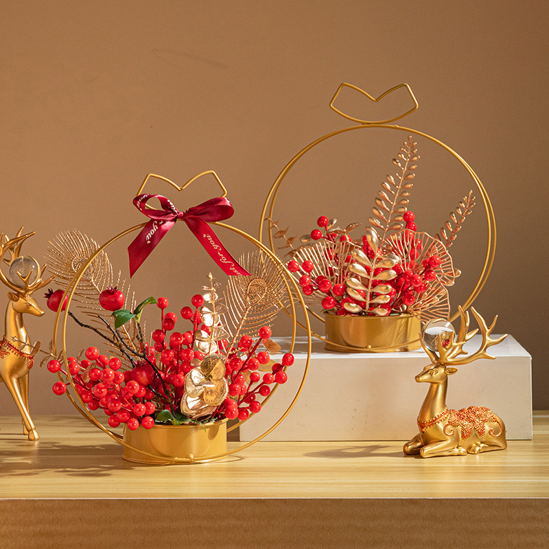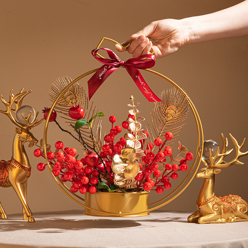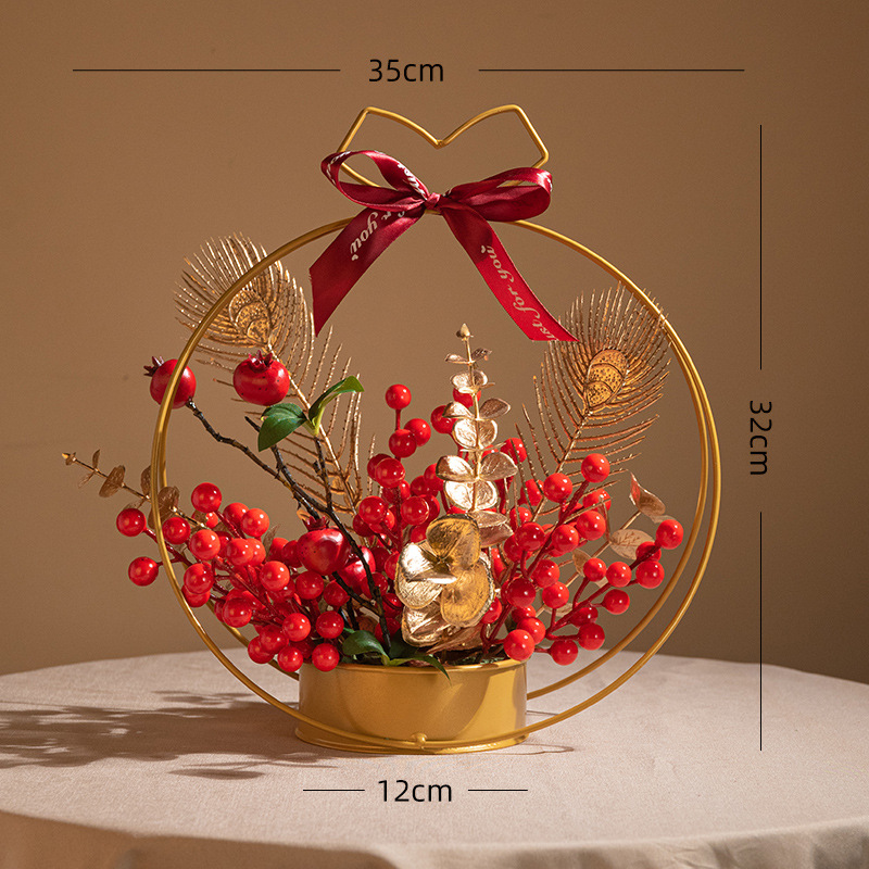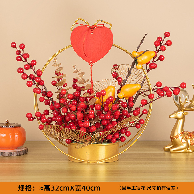 fortune chinese hawthorn iron flower basket decoration holly artificial/fake flower new year flower arrangement spring festival new year decoration lunar new year flower