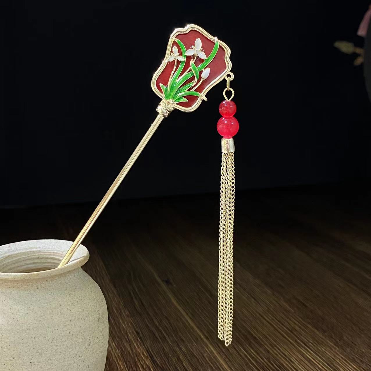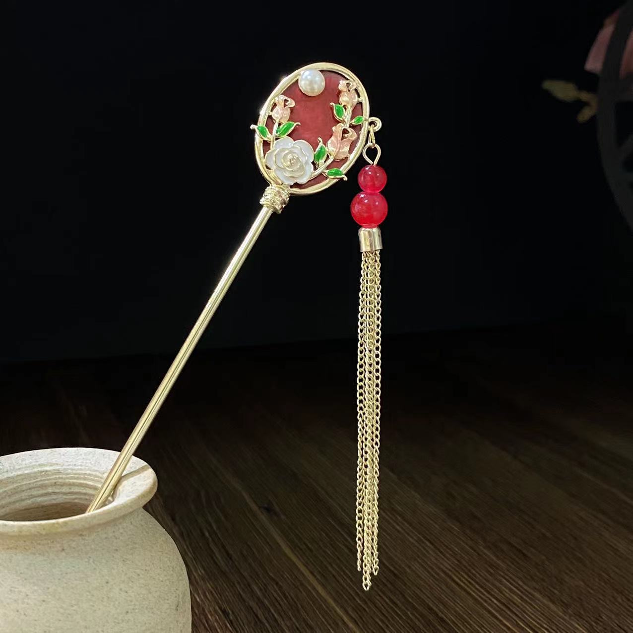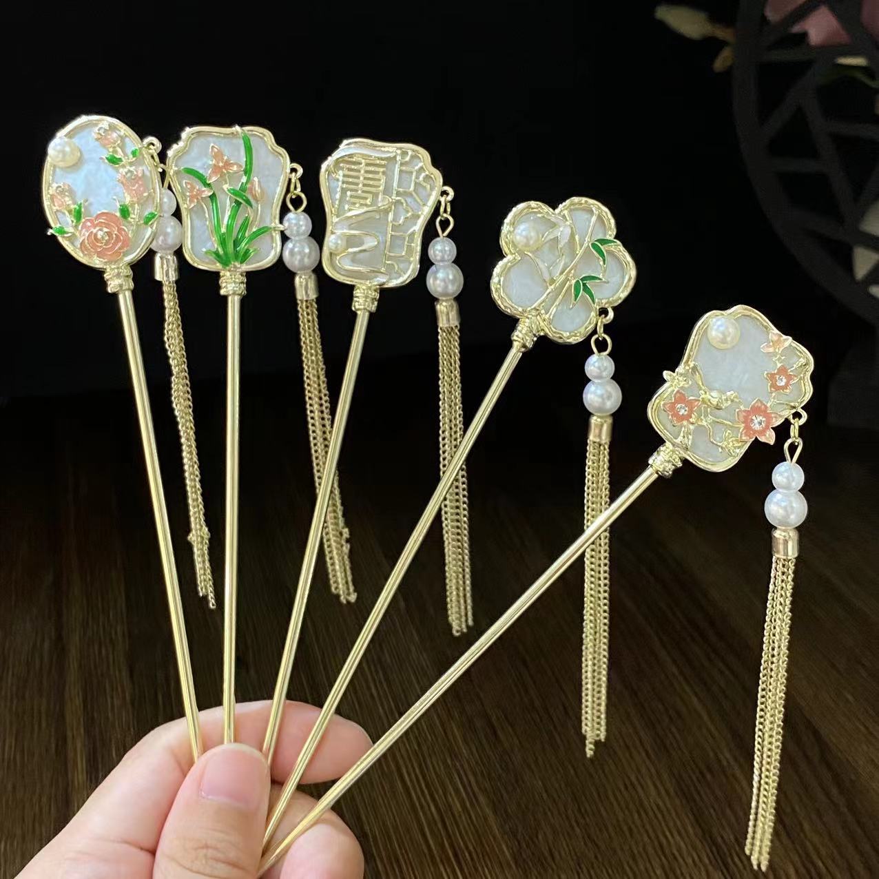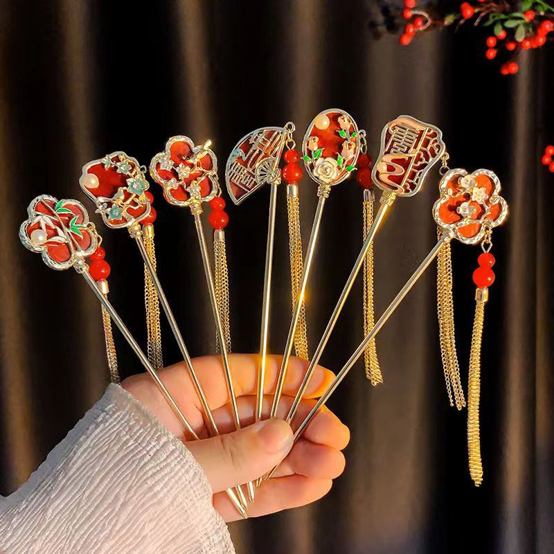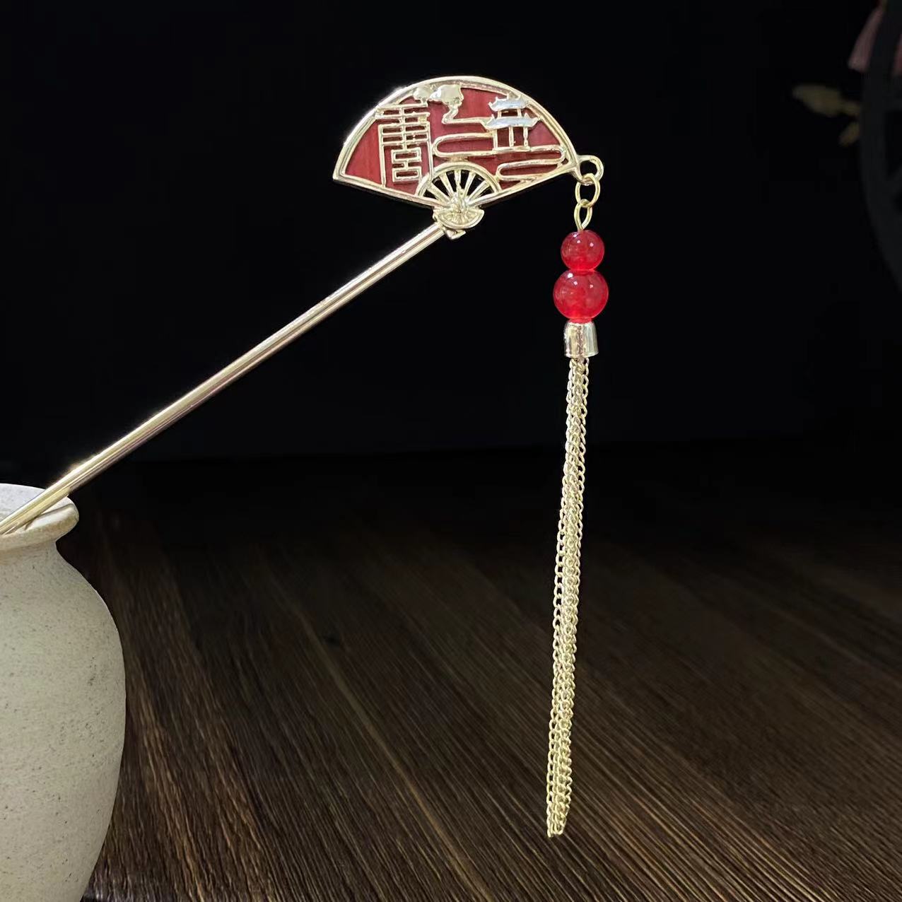 Antiquity Hair Clasp Women's Metal Updo Tassel Han Chinese Clothing Hair Clasp All-Match Daily Fan-Shaped New Chinese Style Cheongsam Headdress Hair Accessories