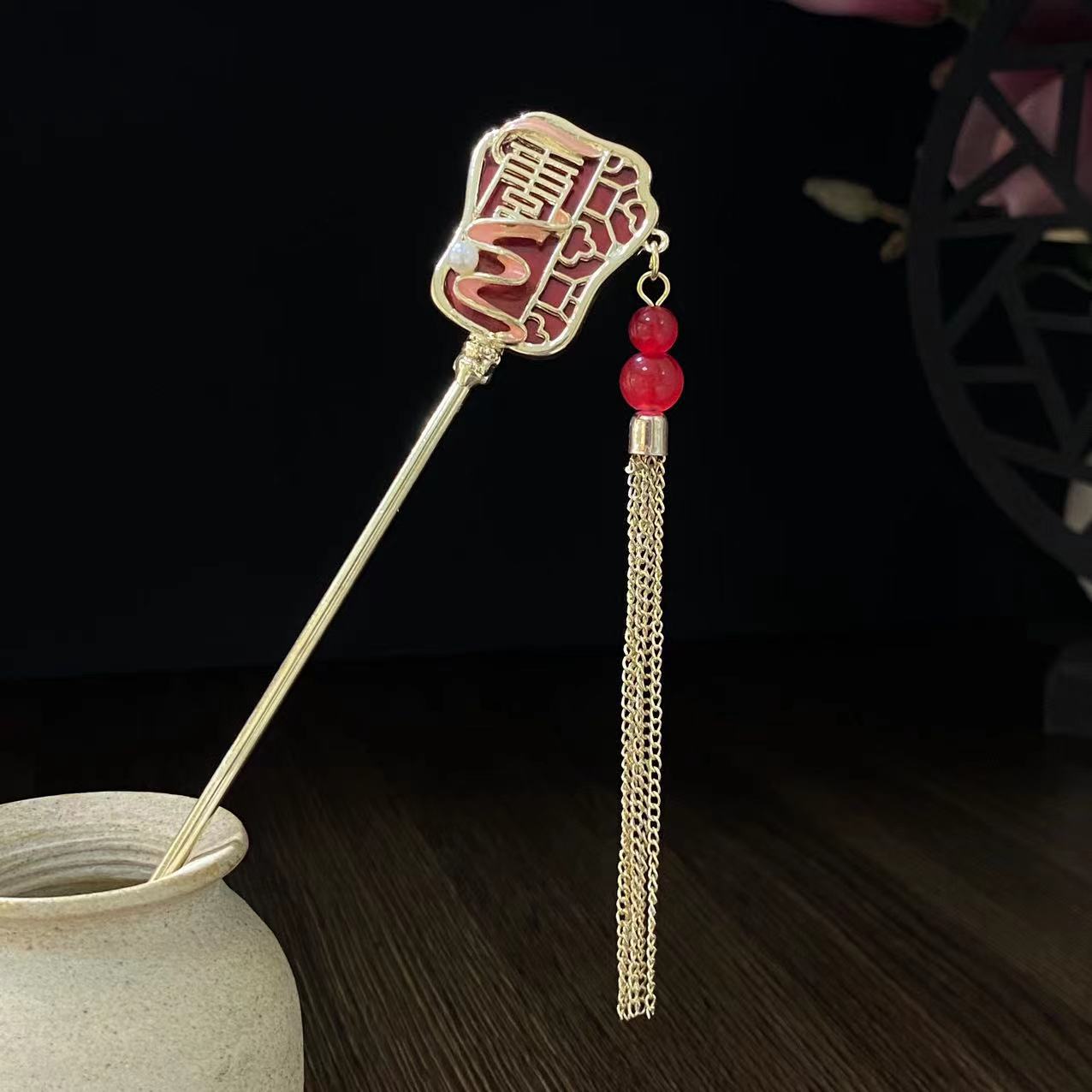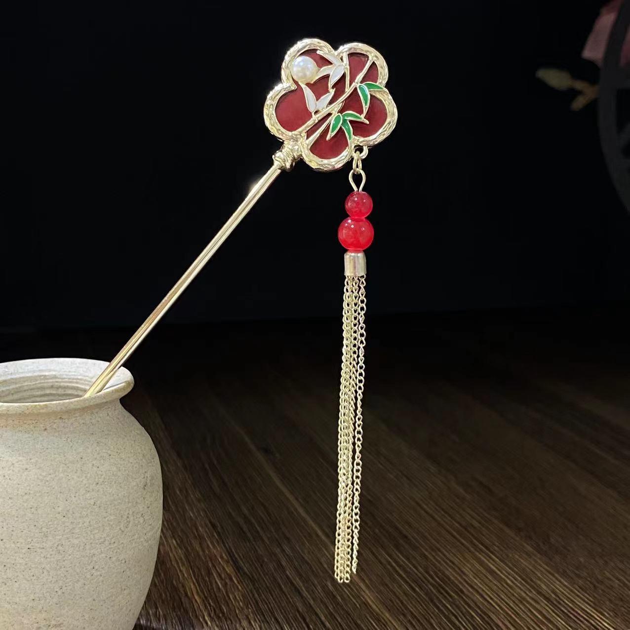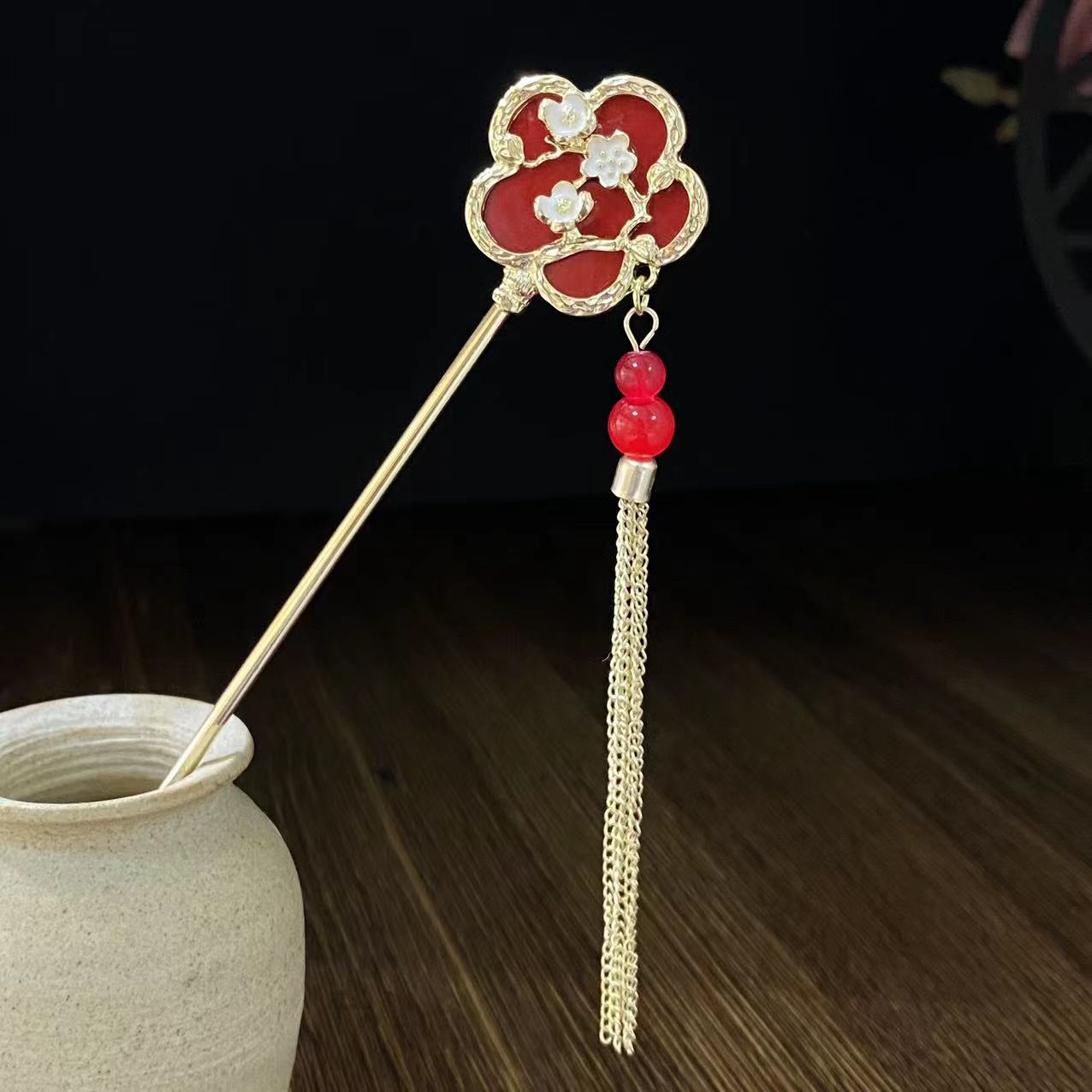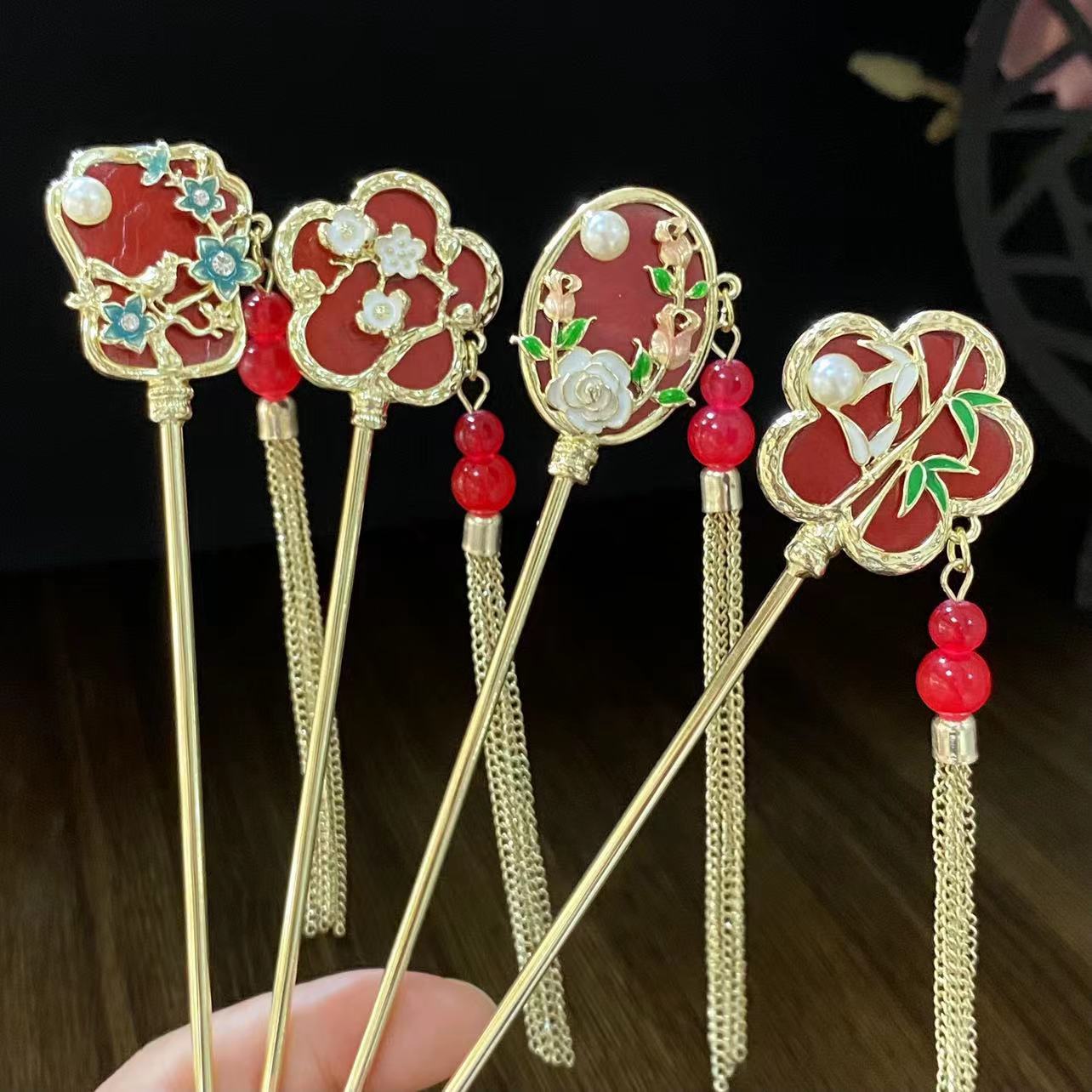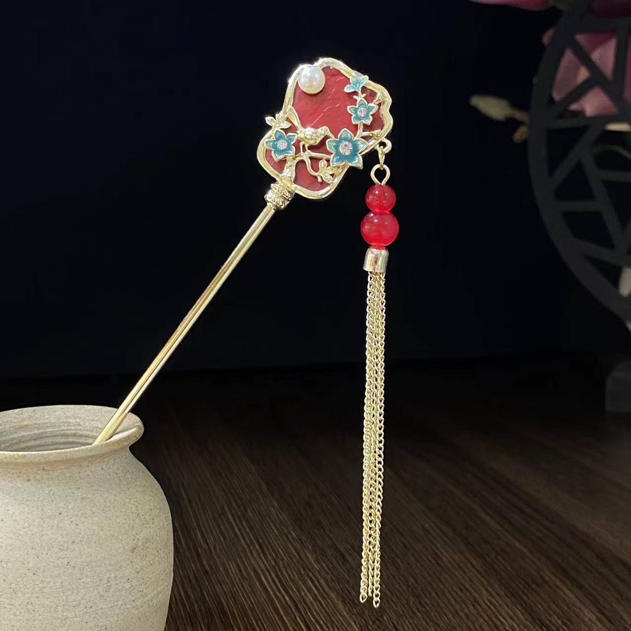 Antiquity Hair Clasp Women's Metal Updo Tassel Han Chinese Clothing Hair Clasp All-Match Daily Fan-Shaped New Chinese Style Cheongsam Headdress Hair Accessories