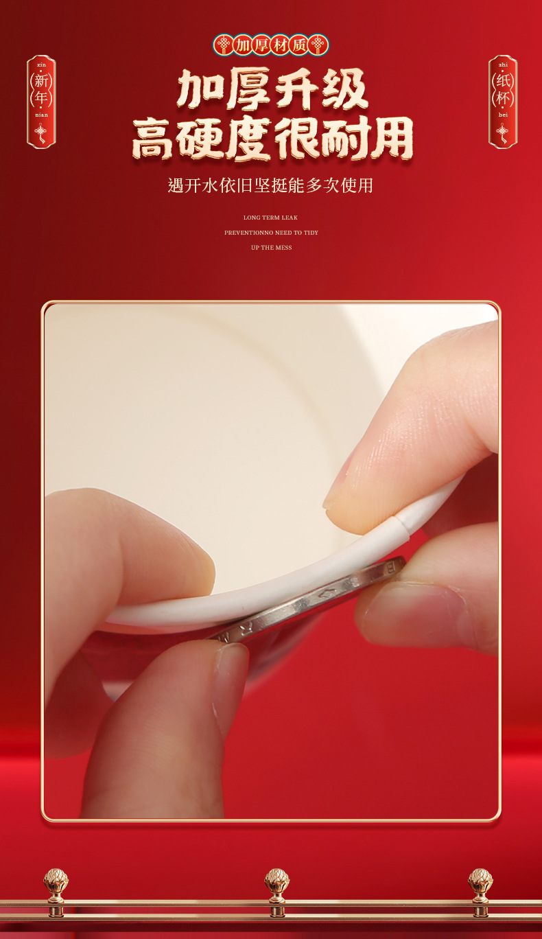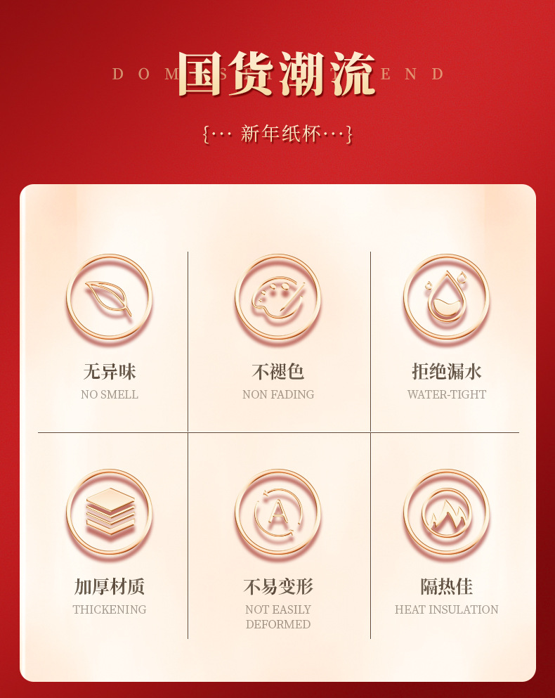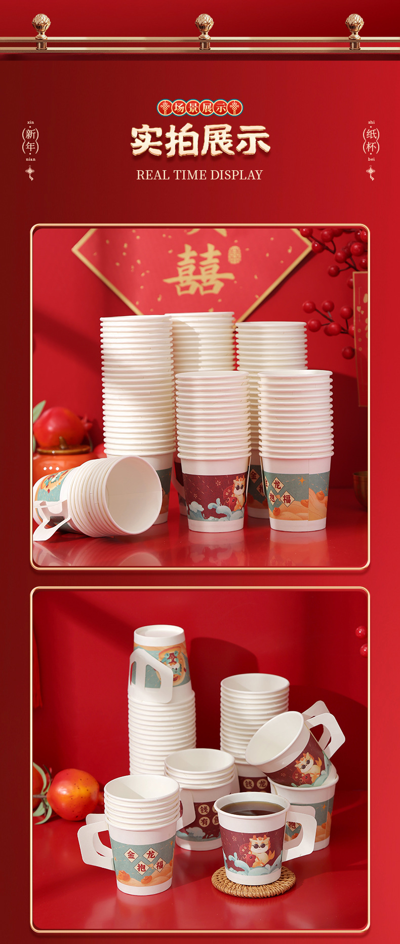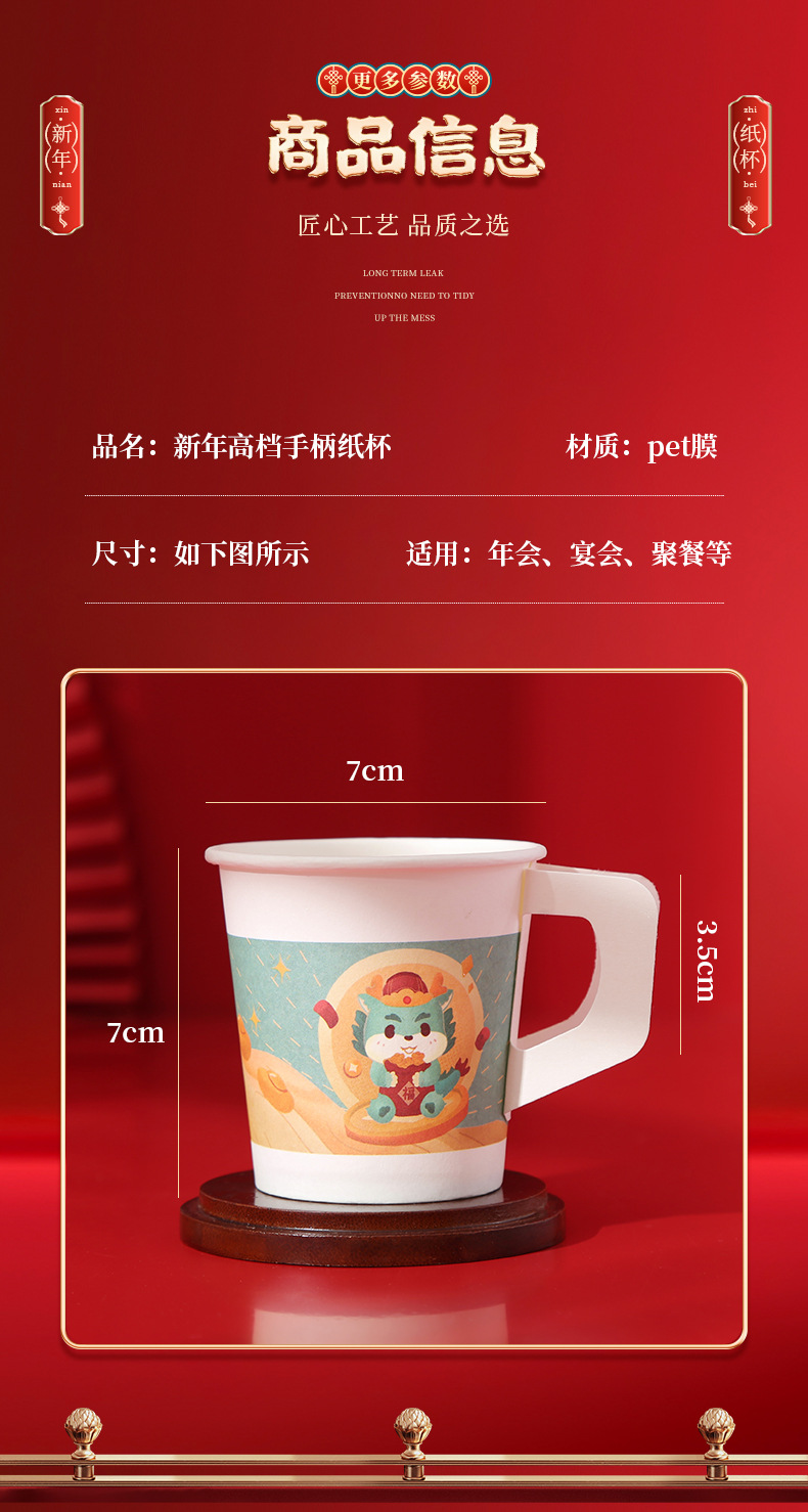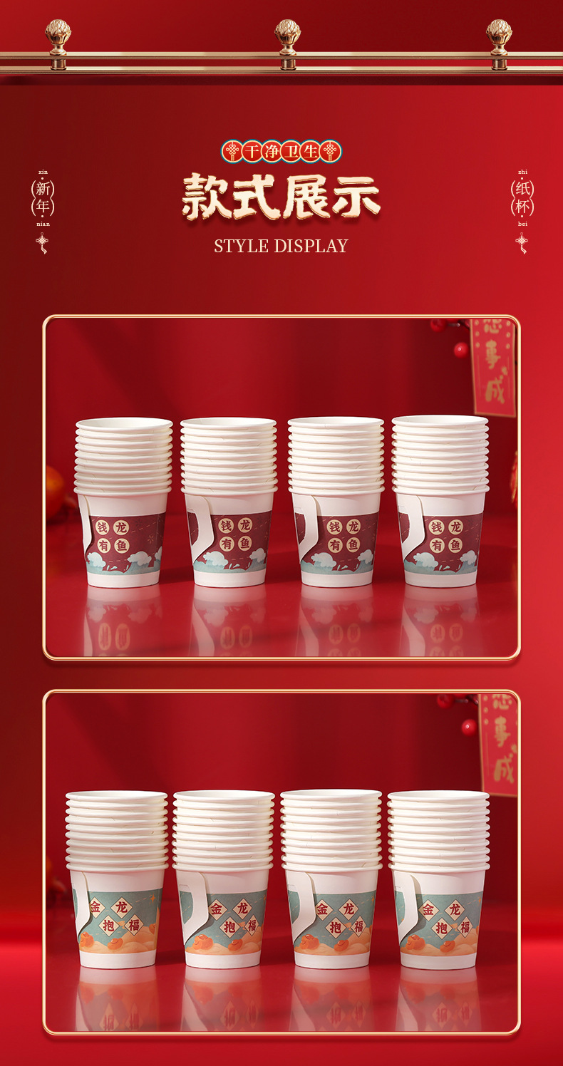 2024 Dragon Year Cartoon Paper Cup New Disposable Spring Festival and New Year's Day Thickened and Anti-Scald Festive New Year Cup with Handle