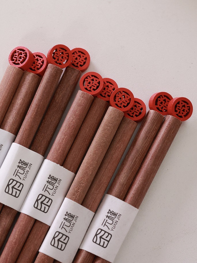 [Yuanjin Bamboo Wood] Home Festival Gift Reusable Chopstick Red Sandal Wood Chopsticks Non-Slip Natural High-End High Temperature Resistant