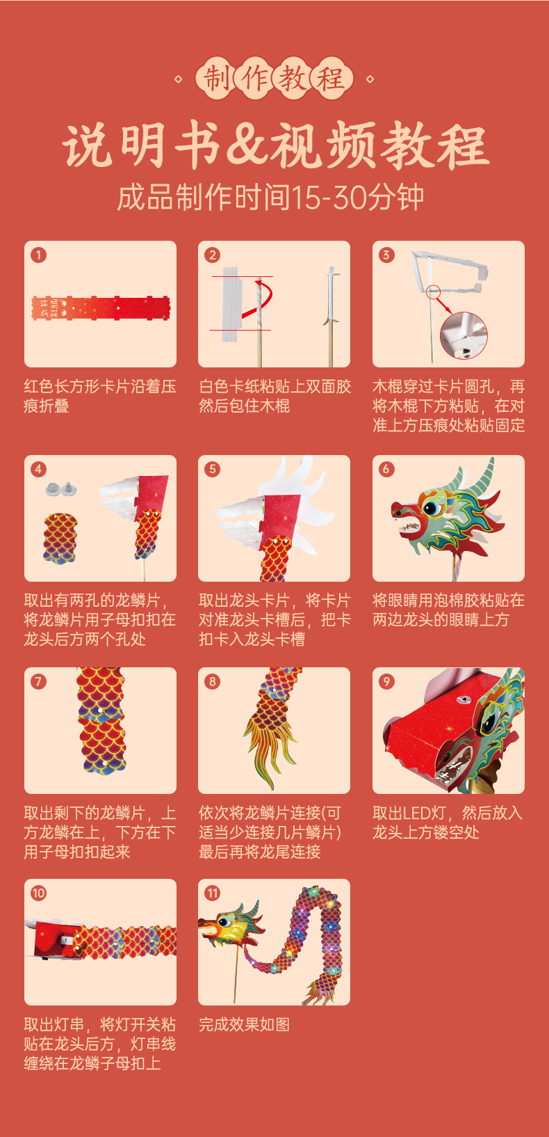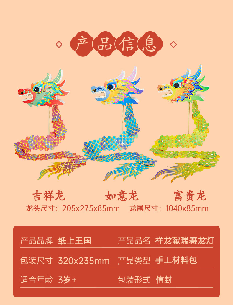 Dragon Year Spring Festival Dragon Dance Lantern Handmade Latte Art Dragon Year Lantern Children Dragon Dance Three-Dimensional Decoration Non-Heritage Culture Dly